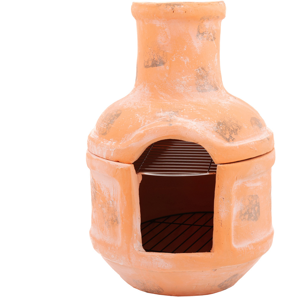 With the Mexican Lima clay chimenea from RedFire, you can enjoy an atmospheric fire in the traditional Mexican way. Due to the porous material, the heat is extremely well guided to every side, so with fewer logs, you can keep yourself warm for a little longer. In addition to using this Lima as a patio fireplace, you can easily convert this RedFire product into a barbecue. The clay part consists of two parts, when you want to use it as a barbecue, you can remove the upper part for a better grill experience. This will give you all the space and freedom to grill a tasty dish. Keep the stove dry. In that way, the frost has no effect on the product. Use a cover or store the chimenea in a dry place. A multifunctional product that stands firmly on its metal base. In addition to the grill, there is also a firestick and a lid included to make it all just a bit better and easier. Because the fireplace consists of two parts, the fireplace is also easy to move.
