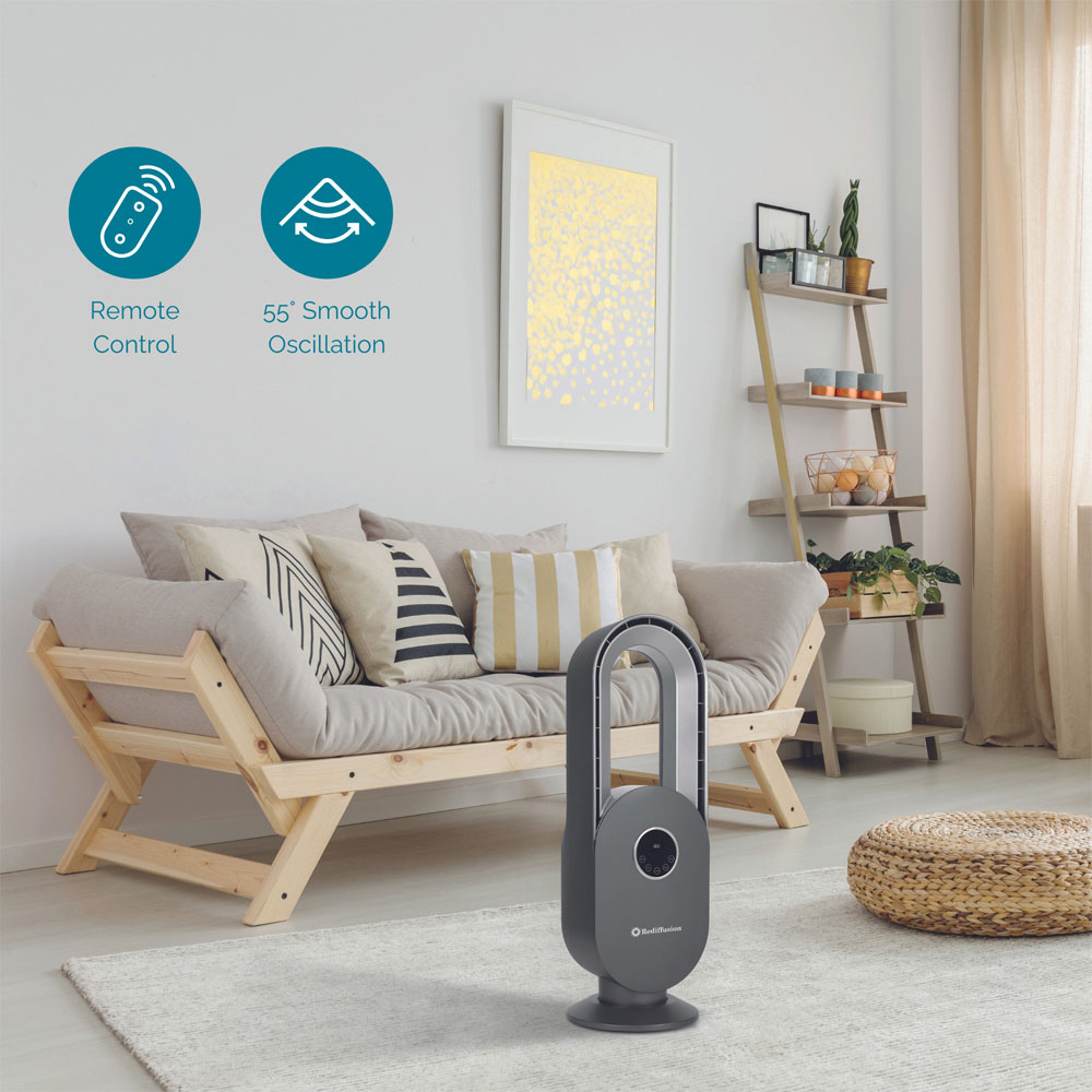 Looking for a perfect comfort companion that is easy to use, energy-efficient, and safe? Look no further! The revolutionary Rediffusion Black Bladeless Fan is the answer to your needs. With its sleek and modern design, it offers a range of customisable wind modes including normal, natural, and night to create the perfect atmosphere for any occasion. Designed with a 55-degree oscillation feature, this fan ensures that every corner of your room is filled with a consistently pleasant and evenly distributed breeze. The simulated natural wind setting brings the soothing feeling of a summer breeze or refreshing gust indoors. And the best part? The energy-efficient design ensures cost-effective cooling, all without compromising on comfort. With easy controls and hassle-free cleaning, the fan is the future of cooling technology for a refreshing and enjoyable indoor environment.