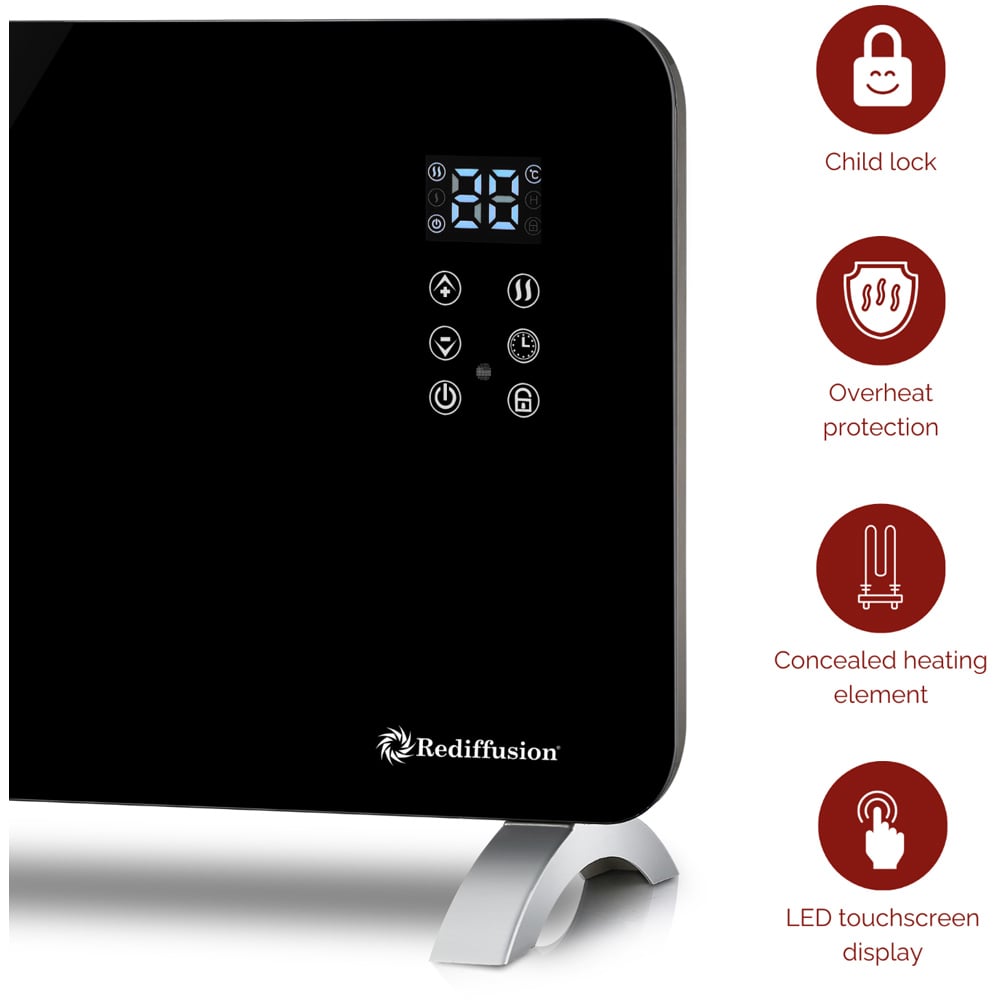 Elevate your heating experience with Rediffusion Smart Glass Panel Heater 1500W. This heater not only combines smart connectivity with fast heat technology but also boasts powerful 1500 watts to effortlessly warm rooms up to 20 square metres. Control and adjust the temperature wirelessly using the user-friendly TUYA app, and set your desired temperature anywhere between 5-40 degrees Celsius to experience quick and efficient heating. Installation is a breeze with the versatile mounting options. Choose between wall-mounted or free-standing to find the perfect spot for your heater in any room. Adjusting the temperature is effortless, thanks to the adjustable thermostat. Additionally, the sleek tempered glass front and touchscreen control panel give it a modern and stylish look. With safety in mind, the heater comes with an IP24 waterproof rating and a child safety lock. You can also set the timer function to automatically turn off the heater after a specified time, ranging from 1 to 24 hours. The heater is equipped with an aluminium heating element and overheat protection, ensuring safe operation at all times.