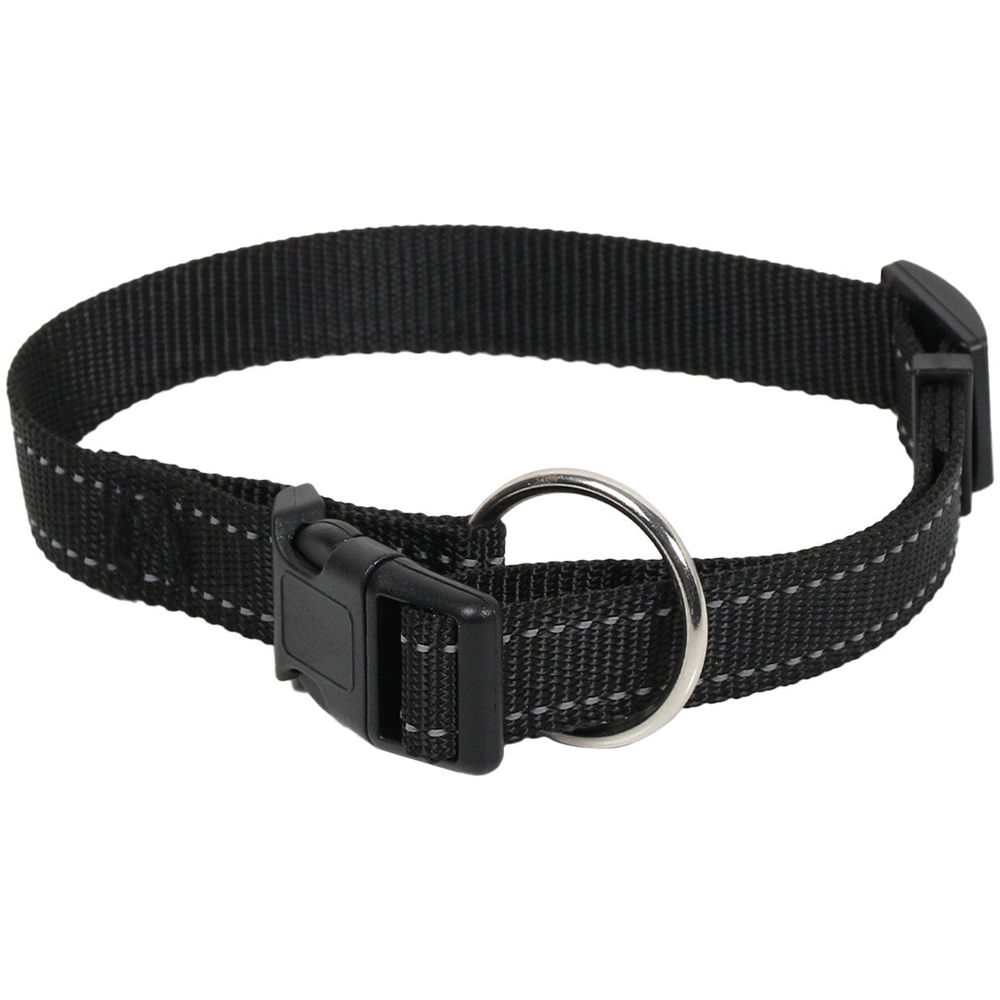 Keep your pup safe and comfortable with this Reflective Nylon Dog Collar. This collar is durable and features reflective strips, so your pooch can be better seen at night. In a variety of sizes and available in two colours, you'll have your dog looking smart and safe easily.