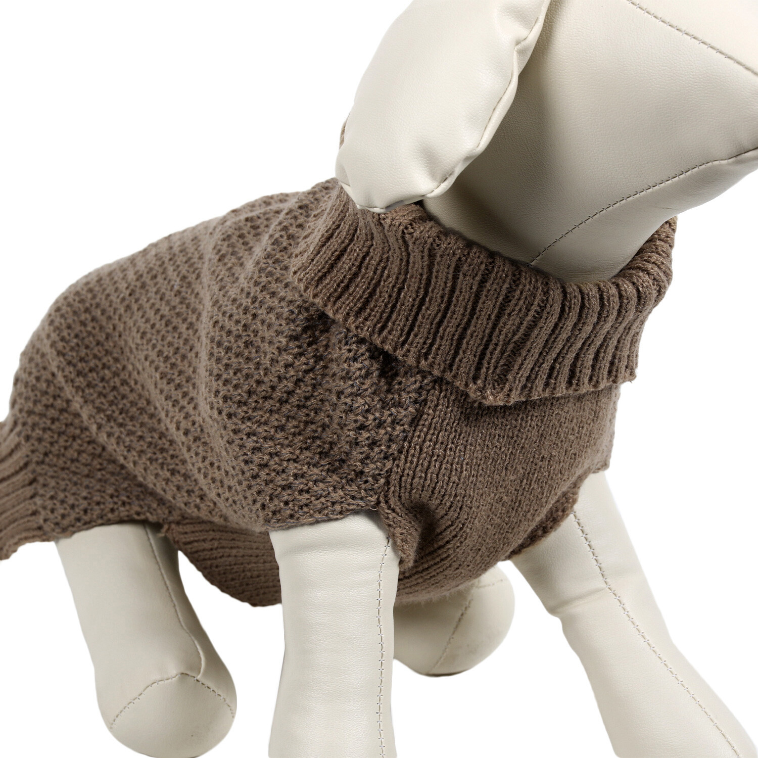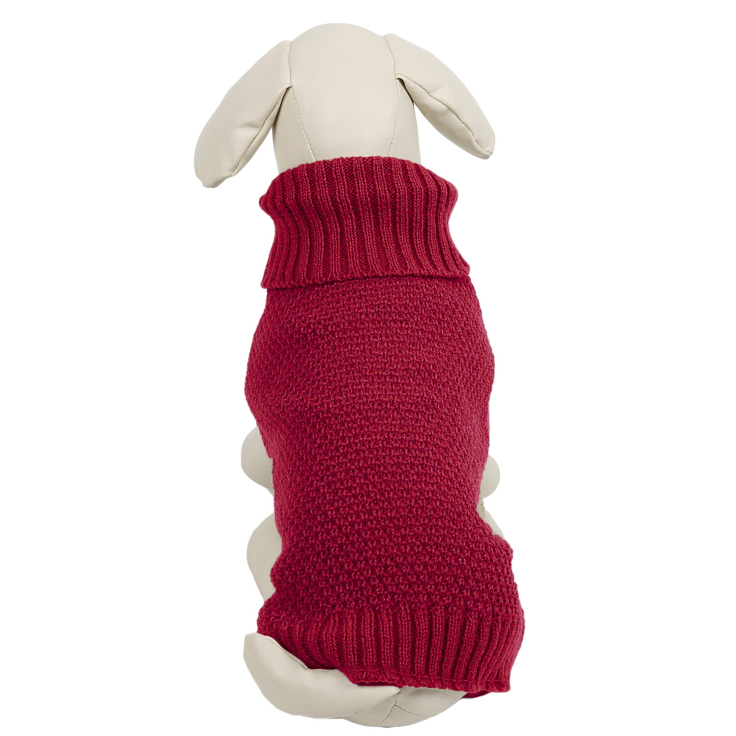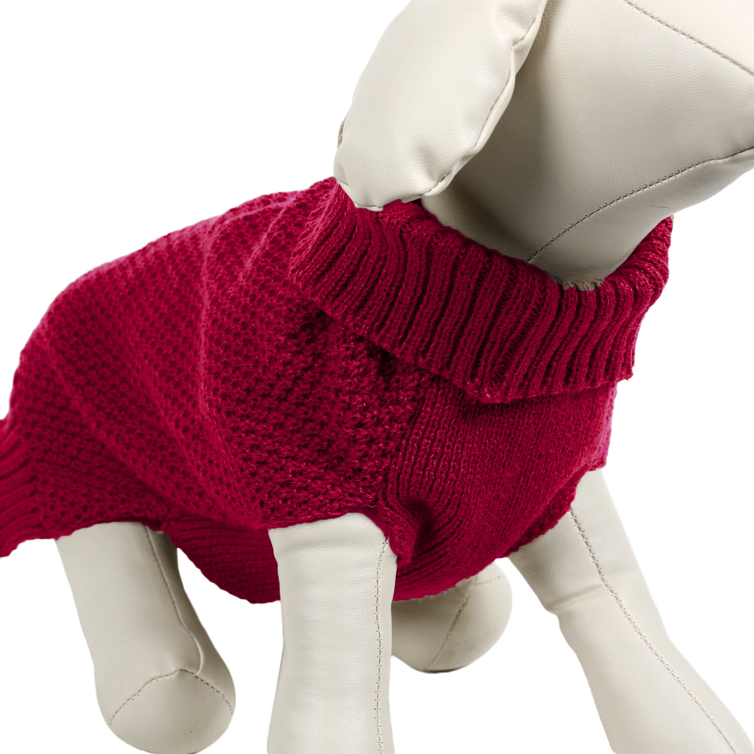 This super snuggly Reflective Rolled Neck Jumper is a functional pet accessory for dogs or cats! The warm woven jumper is made for chilly days. Not only is this designed with a cable knit pattern to lock in the heat, but look closely, and you will notice grey thread throughout; this is reflective and makes your dog far more visible at night when you shine a light on them, great to help you find your pet in the dark. This winter essential is machine washable to keep it in tip-top condition. Pawfect for your pampered pooch, this eye-catching jumper is suitable for indoor and outdoor wear and comes in one of three colours.