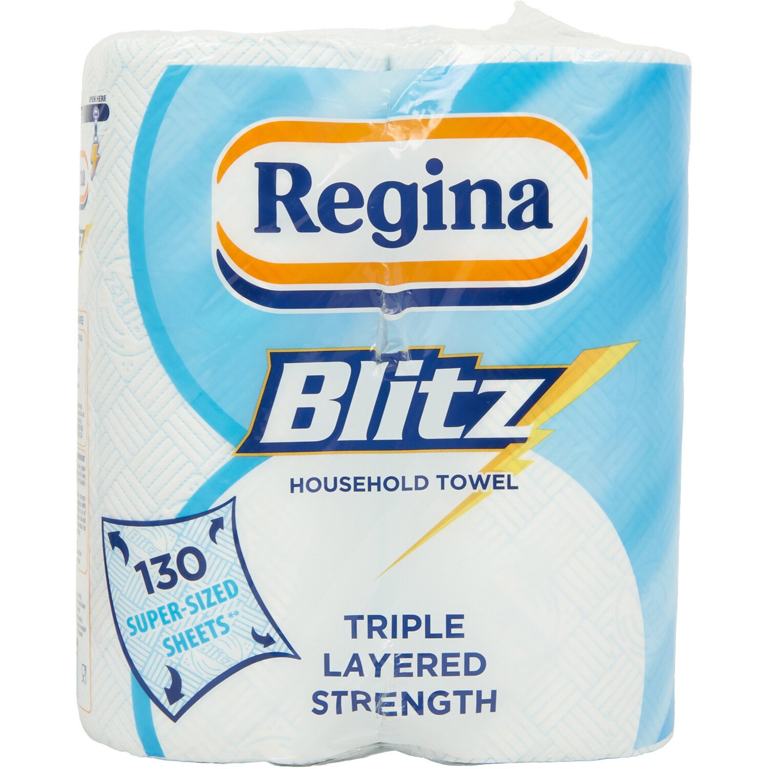 Make household cleaning a breeze with this Regina Blitz Household Towel. The pack includes two rolls, offering 3-ply strength which provides added absorbency without streaks or lint and can be used across any surface. Ideal for mopping up spills, cleaning and more, these kitchen towels will make a practical addition to your household.