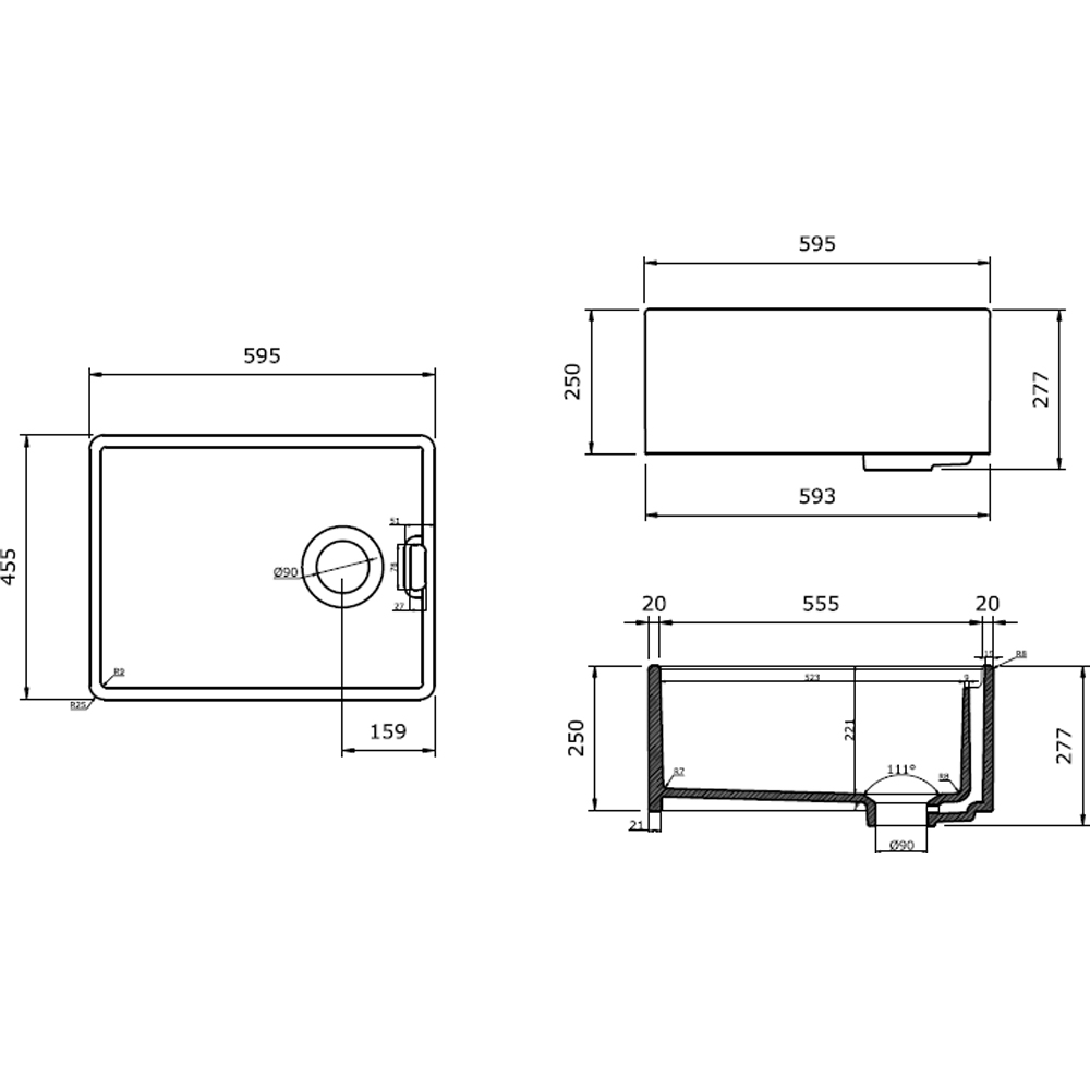 Reginox Belfast II White Single Bowl Ceramic Sink 555 x 250mm