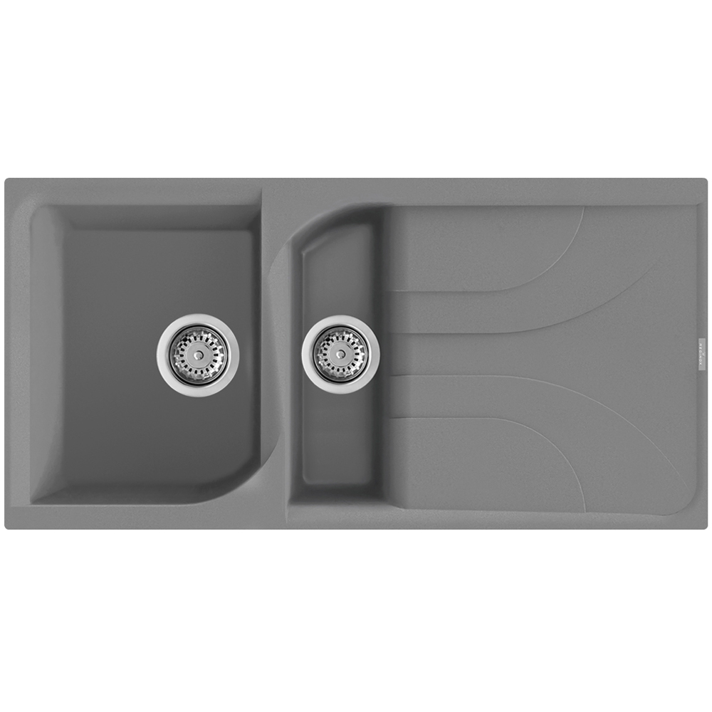 The Ego 475 TT is a 1.5 bowl inset granite sink with a design of sweeping lines in grey with a subtle metal fleck. This sink is designed for use in a 600mm cabinet. With a 10-year warranty on manufacturing defects (1 year on the waste kit), this inset sink comes with partially drilled tap holes so you can choose which way to install your sink. The waste kit and fitting clips are included in the box.