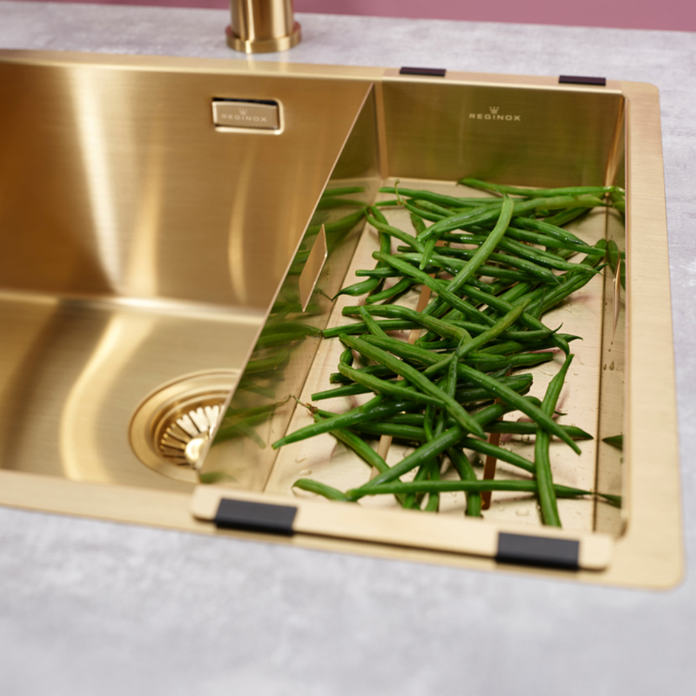 Elevate your kitchen's functionality and style with the Reginox R 3003 gold colander, perfectly tailored to complement the Reginox MIAMI range. This exquisite piece isn't just a kitchen tool but a statement of luxury with its brilliant gold finish, ensuring that even the simplest of kitchen tasks are carried out in style. Ideal for those who appreciate both form and function in their culinary space, this colander is a must-have for efficient and stylish cooking.