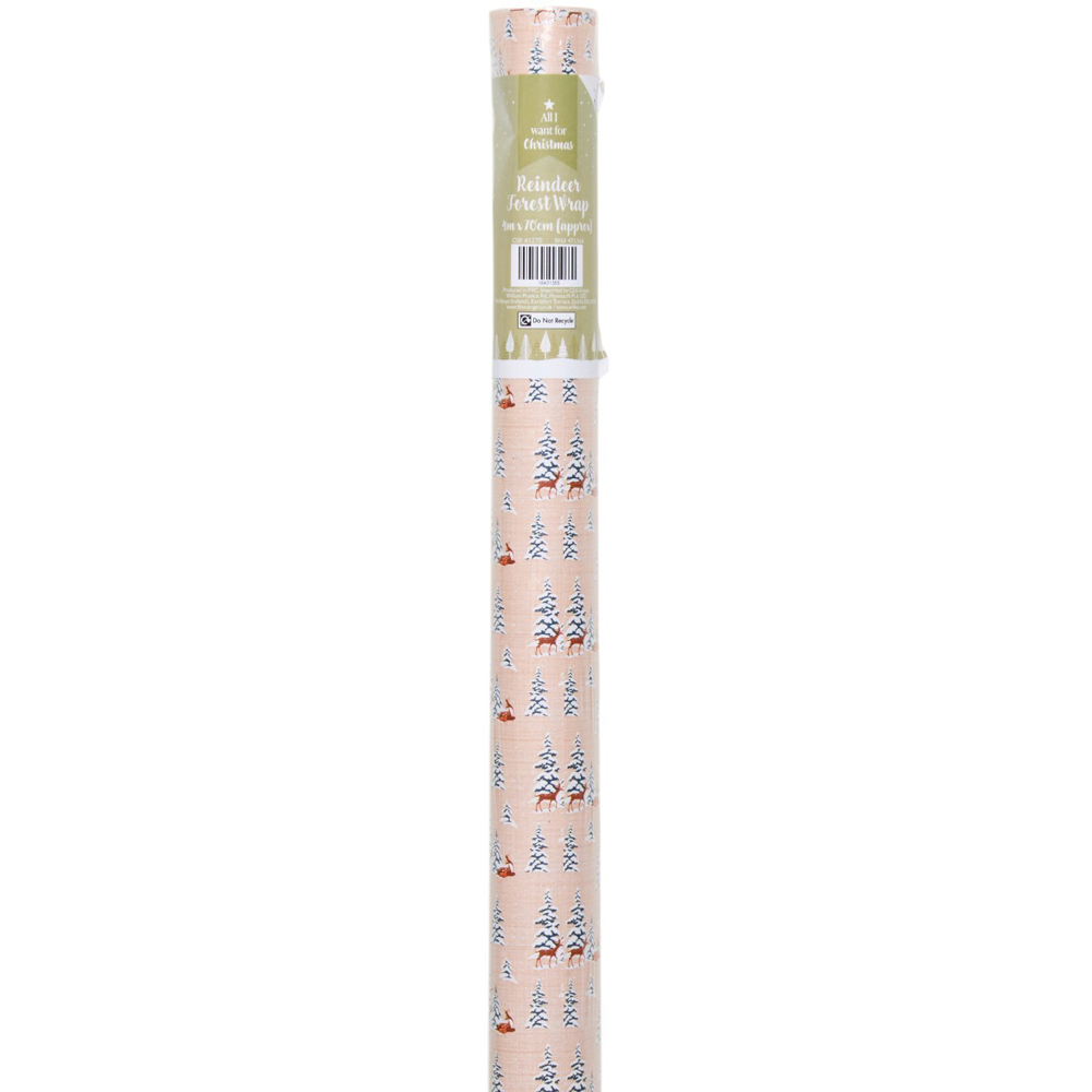 Add a festive touch to your gifts with the Reindeer Forest Gift Wrap. This high-quality paper features a charming reindeer and forest design, perfect for the holiday season. With an ample length, it is suitable for wrapping various presents.