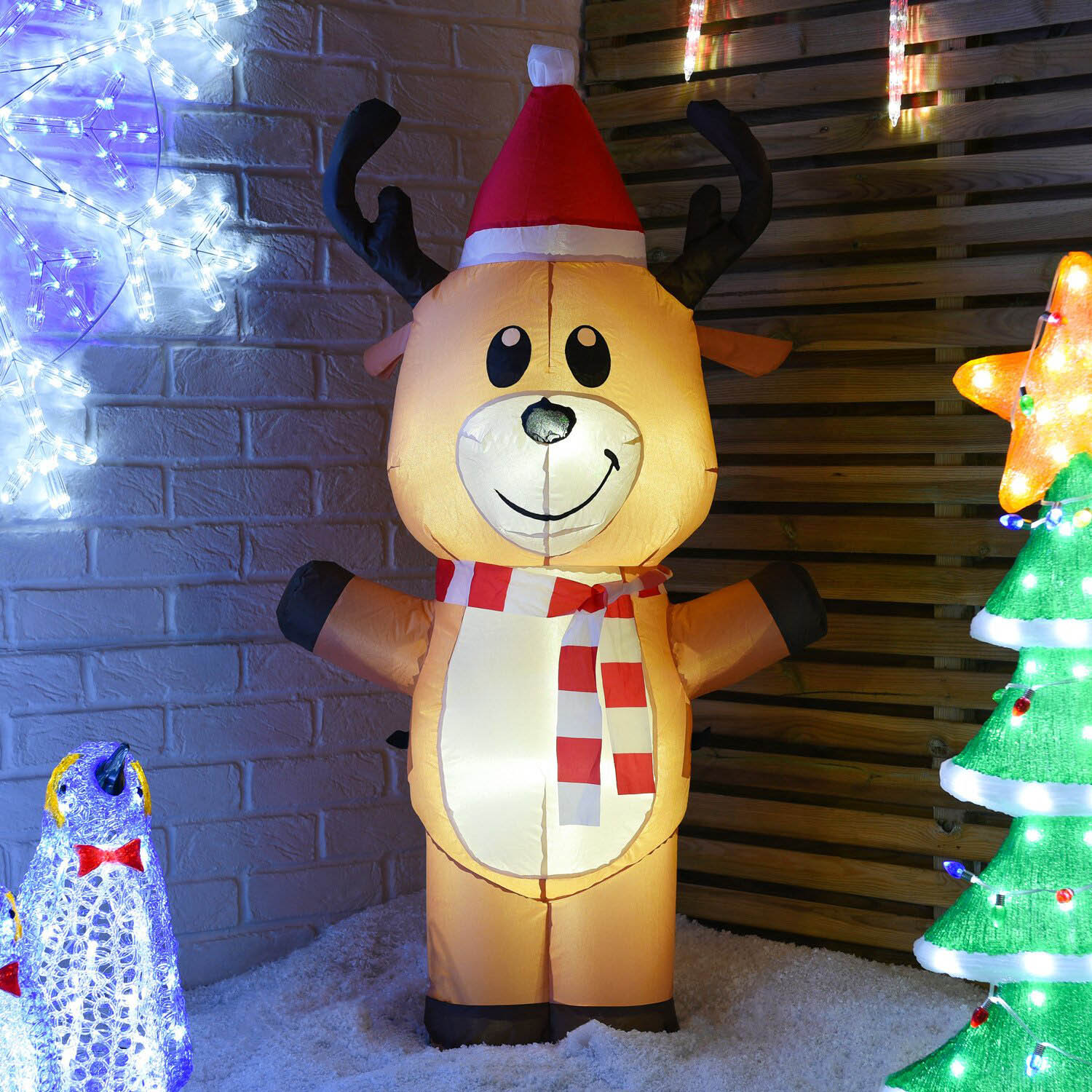 Brighten up your Christmas decor with this Reindeer Inflatable 3.5ft. It inflates quickly and easily, making it simple to set up in your garden, front yard, or even indoors. The reindeer features LED lights that make it glow brightly, adding festive cheer day and night.