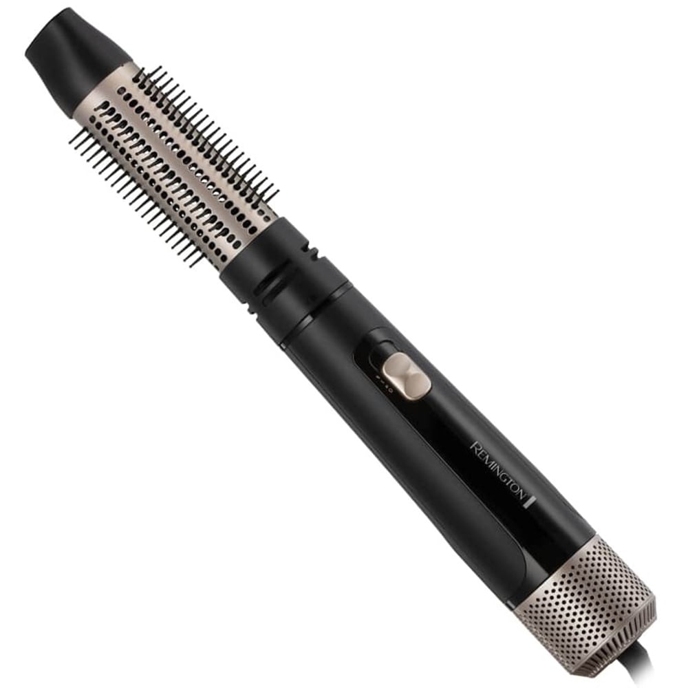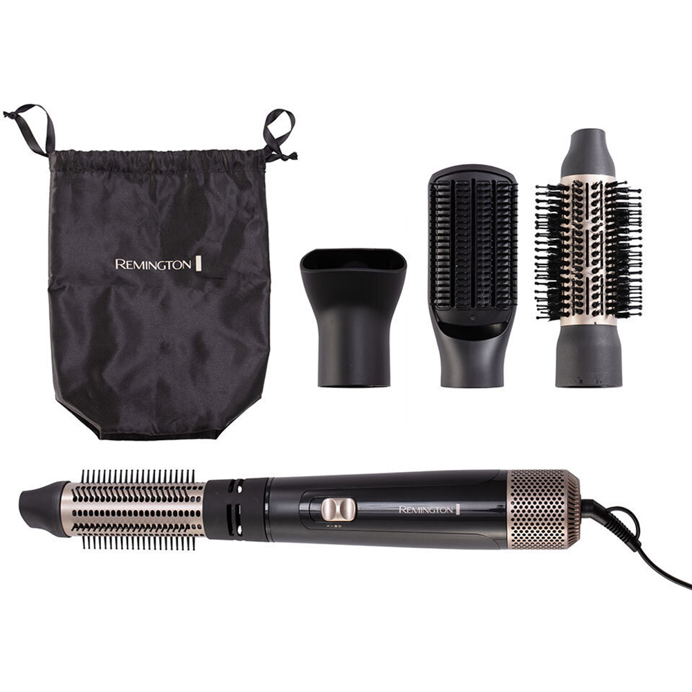 Achieve salon-style hair at home with the Remington AS7500 Hair Airstyler. Its powerful 1000W motor provides fast and frizz-free styling, while the two heat and two-speed settings allow you to adjust the intensity that suits your hair type. It features Ionic conditioning to counteract static and reduce frizz for a smooth shine. The cool shot function is perfect for setting your look in place, providing a burst of cool air. It comes with a hang up loop and swivel cord for easy storage and use. The removable grille makes cleaning the dryer a breeze. It also comes with a storage pouch for easy portability. The product includes 4x Styling attachments for mid-long length hair which include: a firm paddle brush, a 50mm ceramic-coated mixed bristle brush, a 38mm ceramic-coated retractable bristle brush, and a drying concentrator.