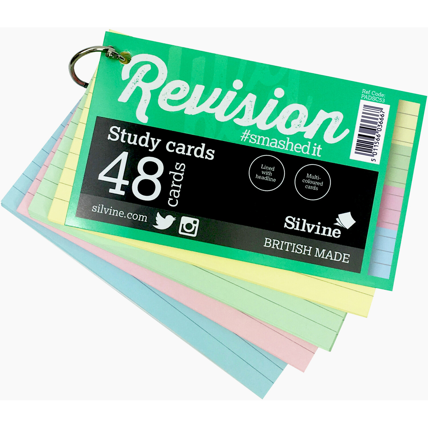 The Removeable Ring Coloured Study Cards are perfect for revision on the go. With 48 multi-coloured cards, held together with a removable binding ring, these cards are perfect for jotting down important notes and facts. They're 100 x 50mm in size making them handy for school pencil cases, backpacks, handbags, pockets and more.