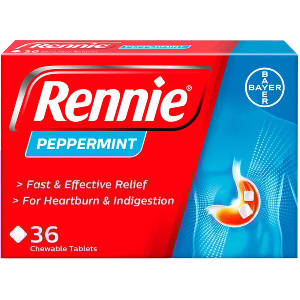 Take control of heartburn and indigestion with the Rennie Peppermint Chewable Tablet 36 Pack. These chewable tablets get to work fast, neutralising excess stomach acid to ease discomfort quickly. Whether it’s heartburn after a meal or that bloated, uneasy feeling, these tablets help you feel better so you can carry on with your day. Easy to take and fast-acting, they are a simple solution for when your stomach’s not playing nice.