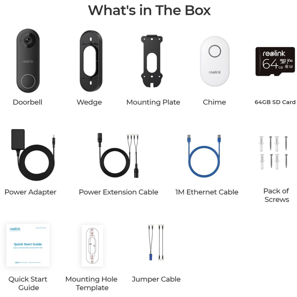 See who is at your door wherever you are with this Reolink 5mp Wi Fi Video Doorbell. It features a 180-degree diagonal view and person detection to see who's at your door and manage your doorbell. This video doorbell also features two-way audio capability to speak to any person at your door. With this device, you can tell the delivery person where to leave your parcel and deter unwanted visitors. The dual-band wi-fi connectivity offers a stable wireless connection and the wi-fi-capable cameras provide clear footage in real-time. This doorbell has a 5mp HD that gives sharp and detailed images. Plus, its camera can be viewed in real time and is compatible with Alexa and Google Assistant screen devices. It comes with a 64GB SD card to store your recordings and let you keep your home safe.