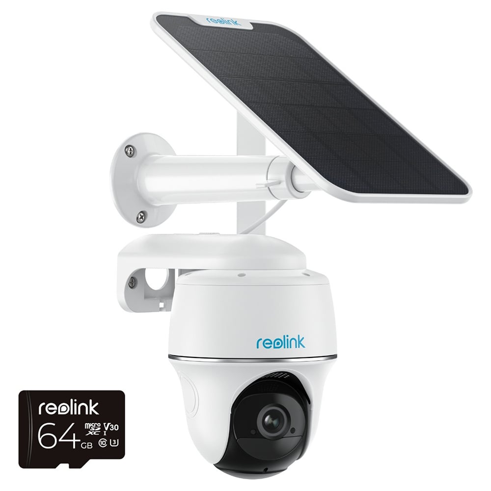 Keep an eye on your place 24/7 with Reolink Go PT 4G LTE 8MP Ultra HD Pan and Tilt Solar CCTV Kit 64GB SD CARD with SIM. It is a 100% wireless Camera that offers seamless security with an eco-friendly solar panel for constant charging. With pan and tilt functionality, it surpasses traditional fixed-view cameras. Advanced AI detects people, vehicles, and animals, ensuring relevant notifications. Two-way audio lets you communicate or deter suspicious activity. Enjoy crisp 24/7 views, even at night, via the Reolink App. The camera includes a 64GB microSD card for extended recording. The 4K 8MP superior resolution provides crystal-clear video views on the Reolink app. The has 4G LTE connectivity with no Wi-Fi needed; use a data-only SIM card for wireless access. Features complete viewing capabilities with a view of pan 355° and tilt 140° for comprehensive protection. It runs on battery and solar with a sustainable solution of a 6000mAh rechargeable battery and includes a solar panel. It uses smart AI to distinguish between humans, vehicles, and animals. It also provides clear visuals day and night, up to 33ft with colour night vision. It features a siren and 2-way audio that is built-in alarm and communication options. It contains microSD storage: The device includes 64GB of storage for motion-triggered recordings, and it can hold up to 256GB if needed. The IP65 weatherproof rating is designed for outdoor use, this camera is weatherproof and dustproof, ensuring high-quality performance even in challenging environments. In the Reolink App, you can view all Reolink cameras in real-time. Manage your entire security system, communicate using two-way audio, and easily access and share footage. Compatible with Alexa and Google Assistant screen devices.