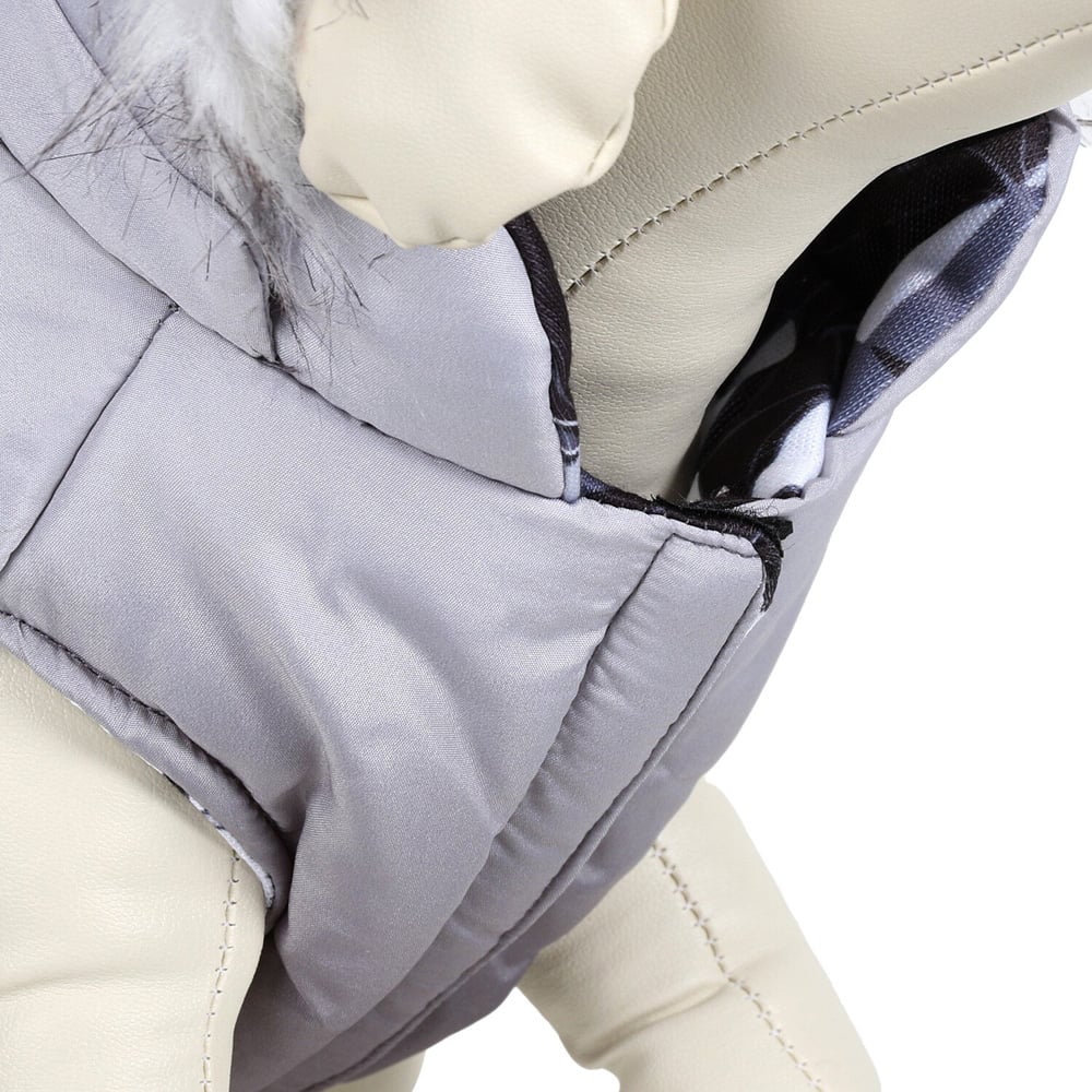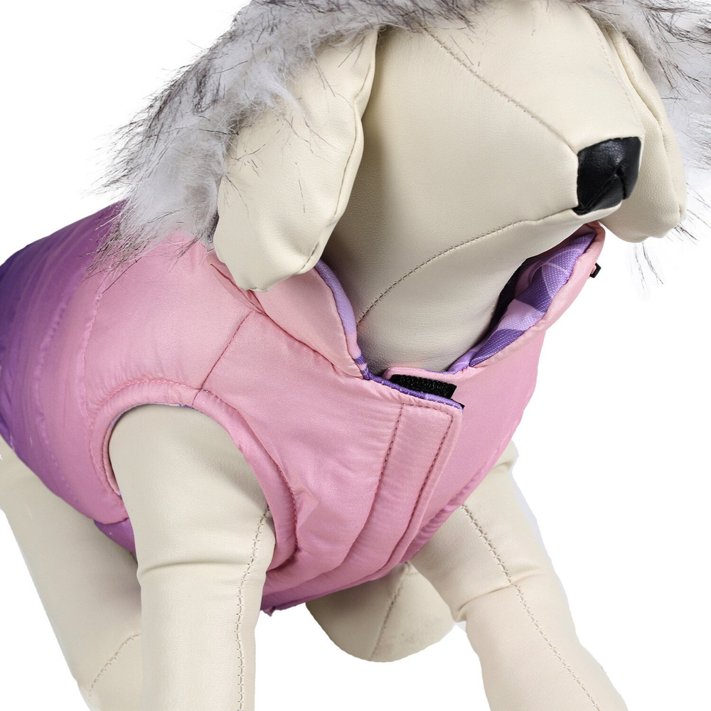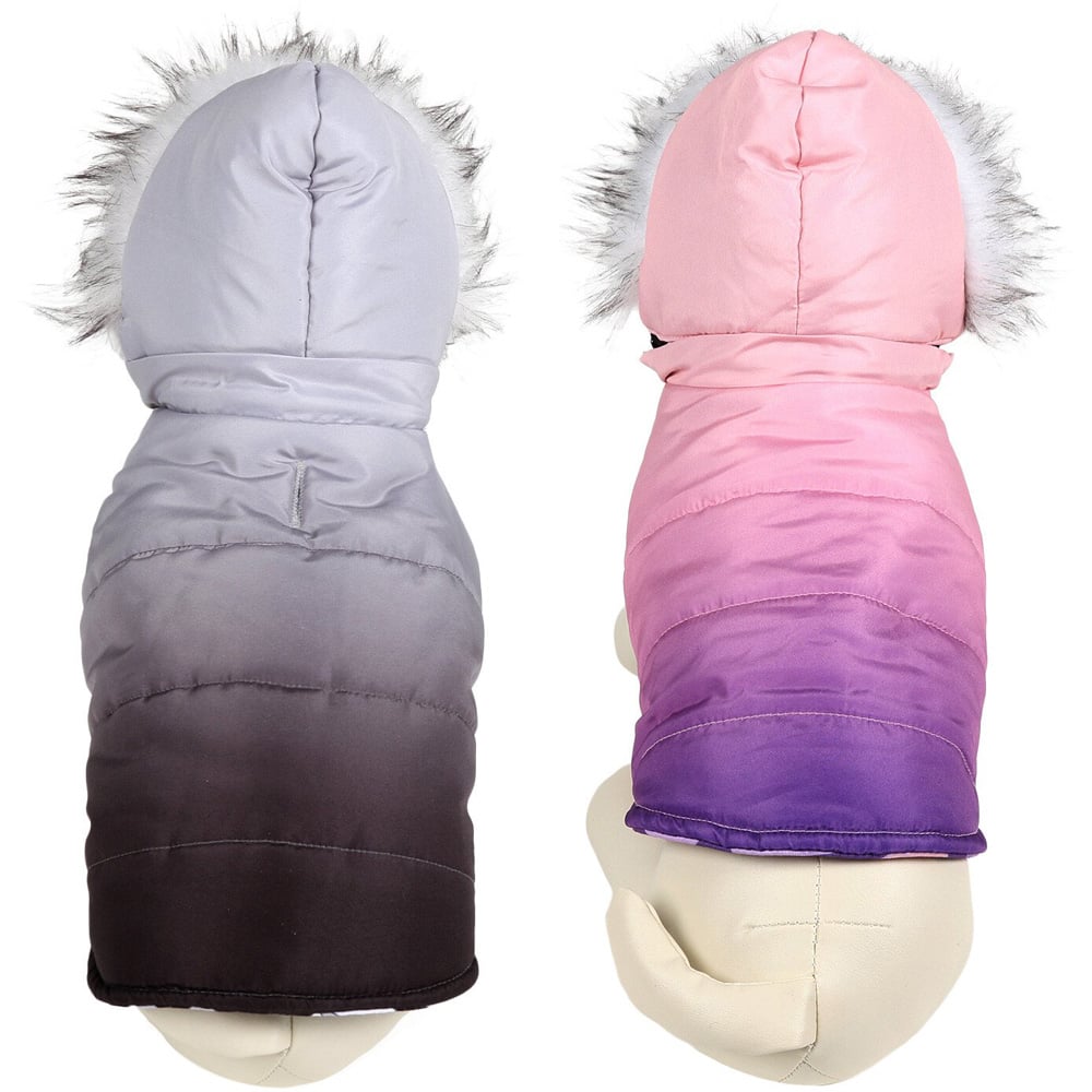 Style, function and value are all rolled into one with this Reversible Hooded Pet Parker. This coat is a super fashionable pet accessory for both cats and dogs, and is sure to keep them cosy during the winter. With an ombre design on one side and a geometric pattern on the other, this can be turned inside out for the style you want. Easily fastened with hook and loop fastening for a quick and comfortable fit, it's even padded for added warmth! This coat is machine washable and comes in an assortment of two colours. With a built-in harness hole for convenient use, this coat not only looks great but is functional too. For the perfect fit measure your pet from the base of their neck to the base of their tail.