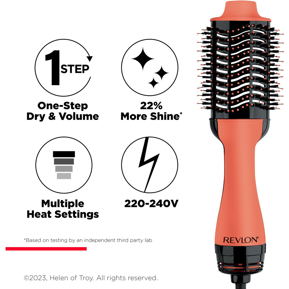 The Revlon One-Step Volumiser has all the power of a hair dryer but gives you all the volume of a styler. The brush dries and styles in one step, helping to provide you with a salon blow-dry in half the time with 36% less breakage. The ceramic technology helps reduce damage caused by over-styling, distributing heat evenly and making styling easier. The volumiser brush also helps to reduce frizz for shiny, healthy-looking hair.