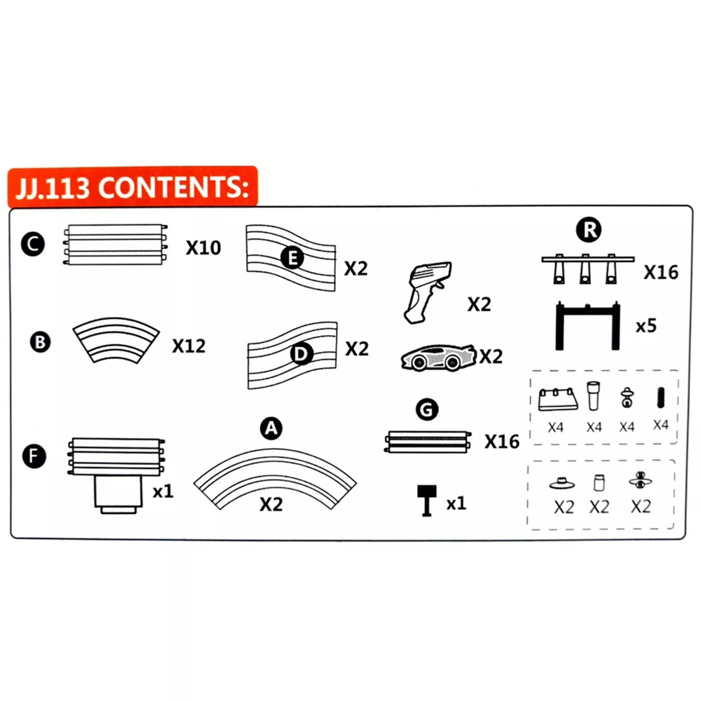 Rexco Large Electric Battery Operated Remote Control Slot Car Racing Track Set Children Kids Boys Toy Race Game Xmas Gift JJ113-1. Ideal for the younger racer, the 1:64 scale Slot Car Racing Set offers all the thrills and spills of the full-sized slot car racing world and is the perfect introduction to the action-packed world of Slot Car Racing. This new set features colourful and futuristic concept cars with exciting features and accessories, keeping the most demanding of junior racers entertained. The track has been designed for uncompromising velocity. Size Of Track: 130cm x 120cm Approx, Scale: 1:64, Perimeter: 730cm Approx, Requires 8 x 1.5V AA Size Batteries (Not Included), Includes 2 x Slot Cars, 2 x Controls.