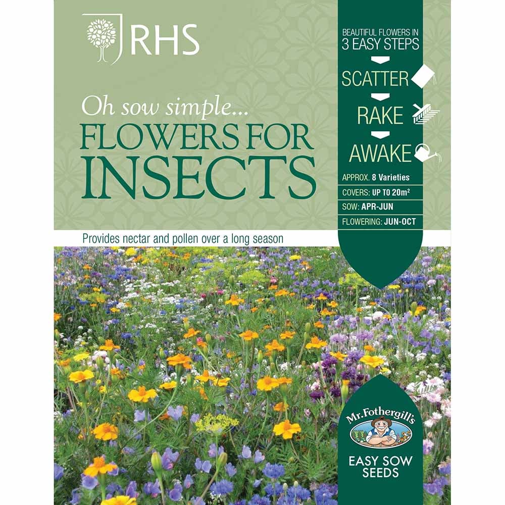 The RHS flower mix for insects provides nectar and pollen for a long season. Known to attract a wide variety of pollinators and useful predatory insects, this special blend of flowers creates a colourful and beneficial display which is simple to grow. Seed mixed with buckwheat husks to aid sowing. Easy to plant with three steps: Scatter, Rake, Awake. Scatter: Shake box well, then carefully tear open the tab at the side. April to June, sow outdoors where they are to flower. Shake out the seed mix gently and evenly, directly onto finely prepared soil. Rake: Lightly rake over the seed bed to cover the seeds. Awake: Water well with a fine spray. Thin out if plants become overcrowded. Water well until plants are established. Flowers from June to October. For a continuous display make several sowings at two to three week intervals. Caution: Harmful if eaten. Contains 8 varieties with a coverage of 20m2. Quality guarantee: Should these seeds fail we will be happy to replace them. This does not affect your statutory rights.