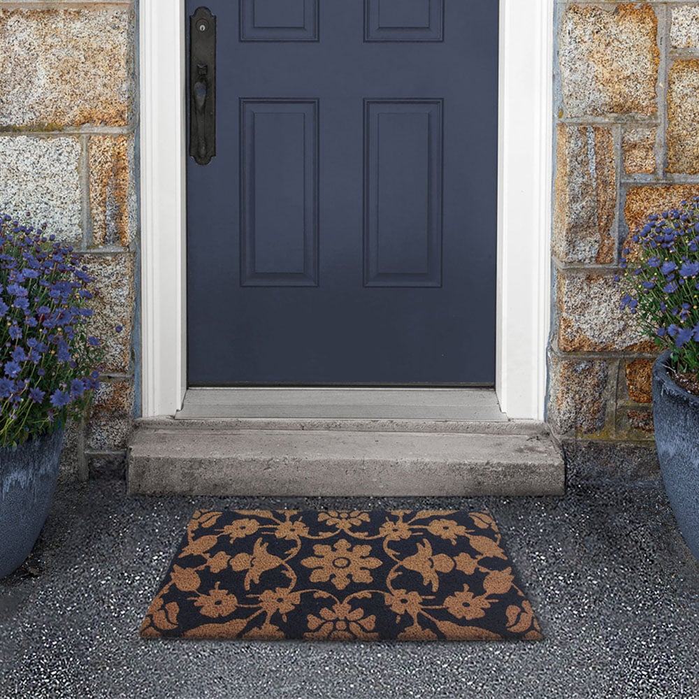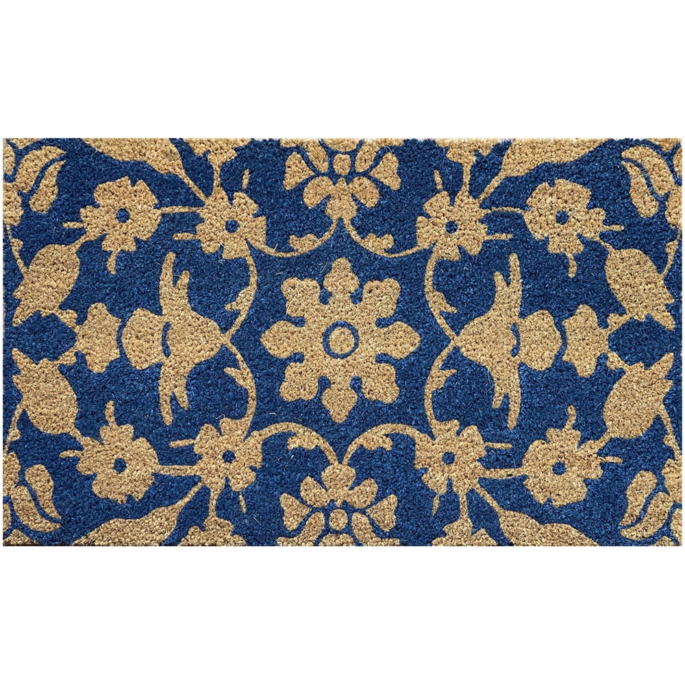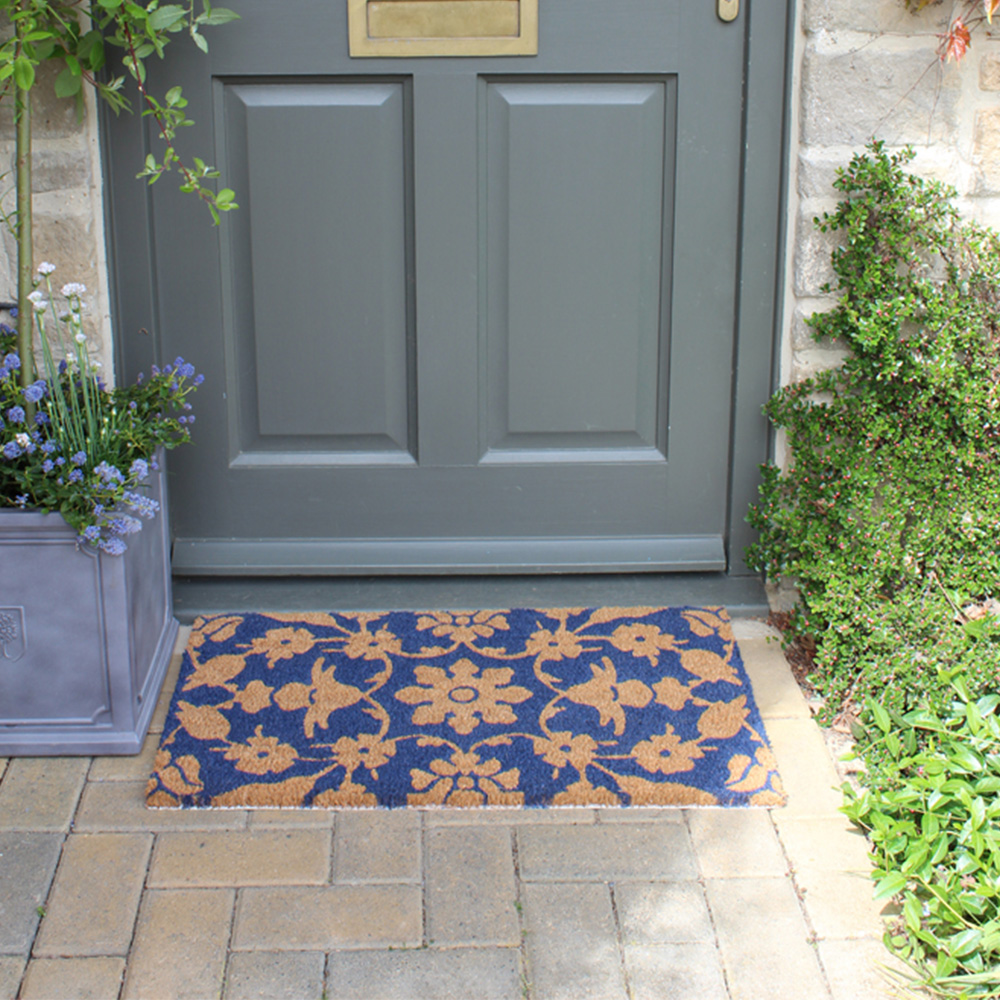 Give your homes an artistic touch with the RHS Jekyll Floral Latex Backed Door Mat 45 x 75cm. This striking coir doormat greets your guests with a touch of elegance and history. It is developed from a tile pattern by the celebrated garden designer and artist Gertrude Jekyll. The inspiring works of this renowned garden designer are held within the RHS Lindley Collections. The doormat is hand-printed in India with a bold blue floral design.
