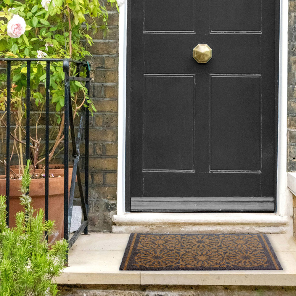 Add a contemporary touch to your homes with the RHS Starburst Grey Latex Backed Door Mat 45 x 75cm. This latex-backed doormat is from the RHS Lindley Collections. It features a hand-printed design inspired by the grand Parterre and Knot gardens of the 17th and 18th centuries. This mid-grey geometric doormat was reinterpreted skilfully into this modern design. It gives your home a stylish aesthetic look.
