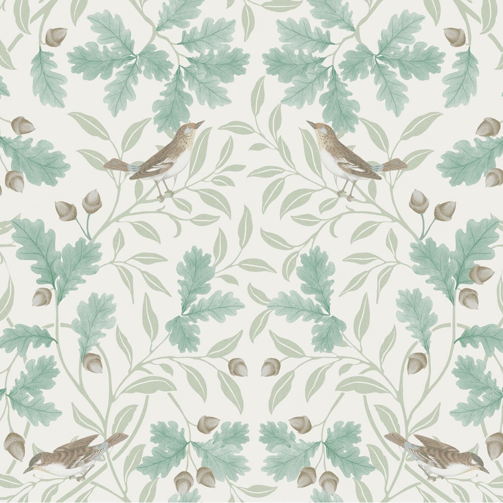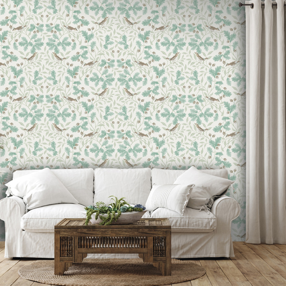 Inspired by the tranquil beauty of a woodland setting, the RHS Woodland Songbirds Sage Wallpaper depicts charming songbirds nestled amongst delicate branches. This serene design brings a touch of nature's peacefulness into any room, creating a calming and inviting atmosphere.