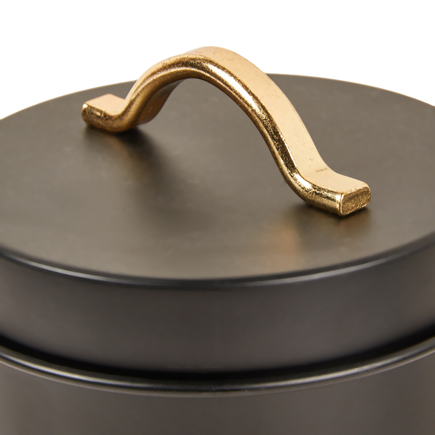 Store and keep your food supplies fresh for a long time with this Ribbed Canister Bin. Modern and sturdy in design, it features a matt black finish with a ribbed bottom and a gold carry handle. Easy to care for, it'll make a charming addition to any kitchen.