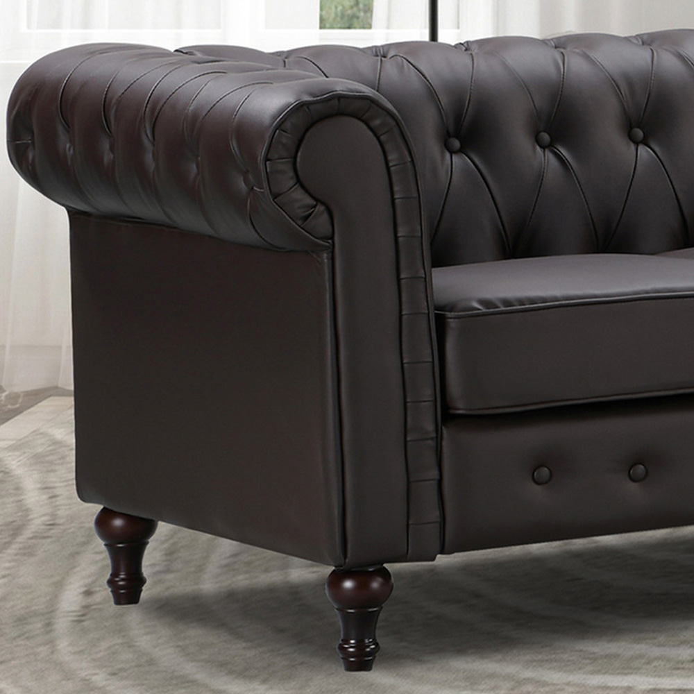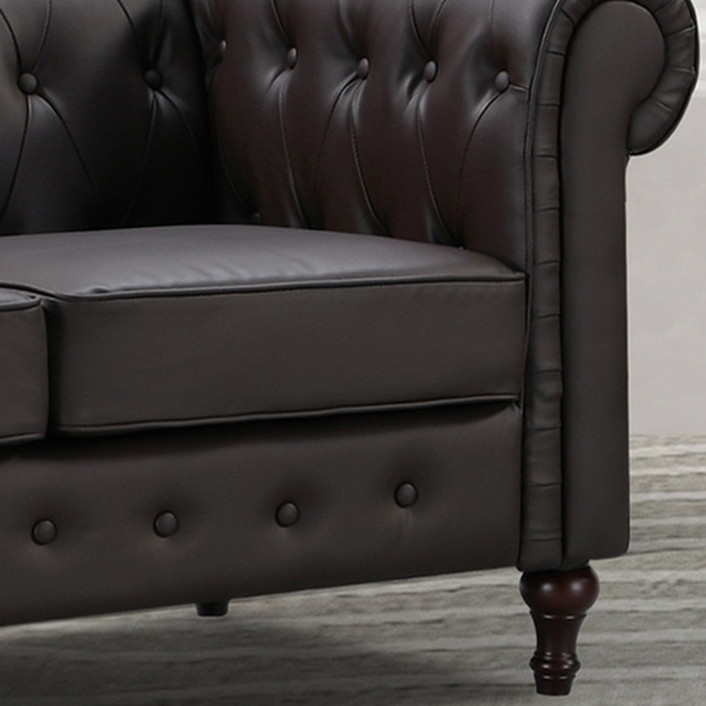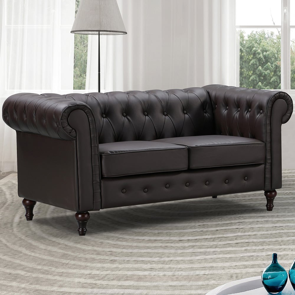 Upgrade your home or office space with Richland 2 Seater Brown Leather Sofa. This stylish Chesterfield-type sofa is perfect for both home and office use. The suite is constructed from a solid, hardwood frame with a sprung and foam-filled interior and is upholstered in durable bonded leather with some faux leather used on the lower-stress areas. This is a 'sofa in a box' type model and arrives unassembled - perfect for bringing through narrow doors and corridors. Do not worry about the assembly of the product, as this will be carried out free of charge by the white glove delivery team.
