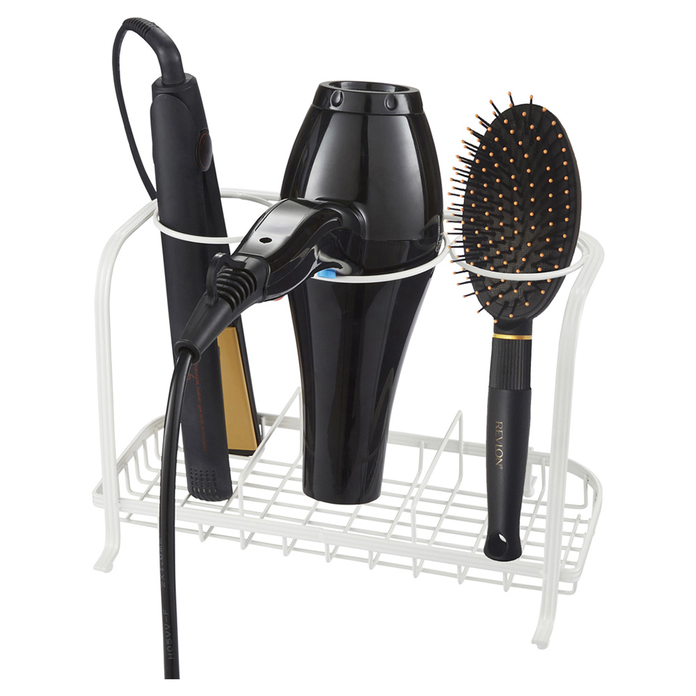 Keep your dryer and straightener organised with Ricomex Cream Hair Dryer and Straightener Holder. This stylish storage unit lets you put hot straighteners, curling tongs and hair dryers safely down on your dressing table. Heat-resistant - the stand has three compartments for keeping your hair dryer, straighteners or curling tongs securely. To help your appliances cool quickly, the strong steel and the open grid design safely store your hot tools allowing hot air to escape. The compact design takes up minimal space on small or crowded bathroom countertops and vanities. Size: 15.7cm x 28.7cm x 19.1cm.