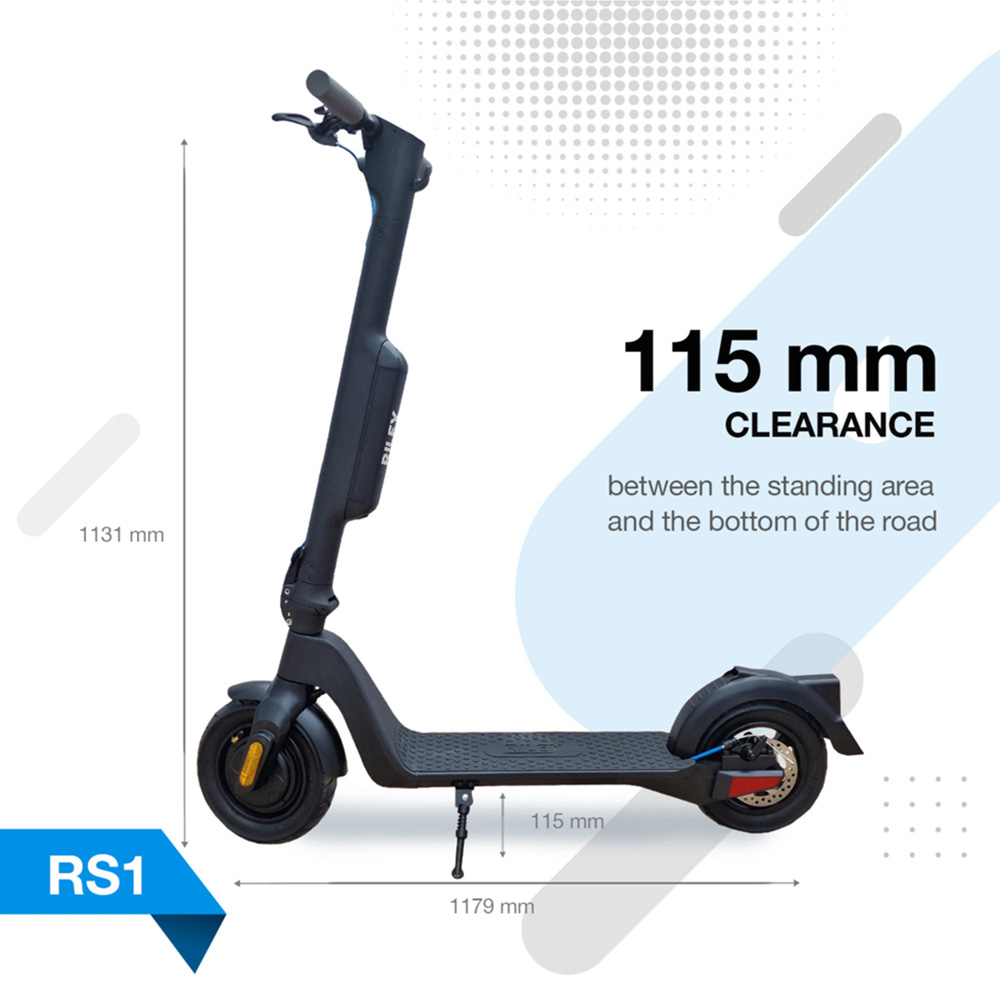 Ride free with a true blend of iconic design, aircraft-grade aluminium alloy frame, and durability that's too good to share. With the roll of your thumb, you can accelerate up to 15 mph to a range of up to 15 miles with the comfort of acceleration, braking and cruise control, at the touch of a finger. The Riley RS1 includes our proprietary brushless powertrain technology with a 700W peak, gets you there quicker with unbeatable performance and quality you expect. It is equipped with a long-range removable 37-volt 5.8ah battery pack which fits in your backpack that can be replaced in less than 20 seconds and charged in a matter of approximately three hours. It features three drive modes – Eco, comfort and performance, together with three separate braking systems – a disc brake, E-ABS and a pedal brake, wide 10-inch pneumatic tyres, and an LED headlight & taillight system – that help you to stay seen whatever the conditions. It also has an LED screen showing your speed, speed setting and how much charge is left in the battery. The RS1 is equipped with a reinforced foldable handlebar chassis, so you can fold your scooter within three seconds, then take it with you wherever you go. It also has an IPX4 rating, so you don’t have to worry if the weather takes a turn for the worse and a 115mm distance between the ground and the footplate. Unfolded dimensions 131.1 x 15 x 118.1cm. Folded dimensions 113.1 x 15 x 48.5cm. Scooter weight is 13kg. Suitable for ages 16 years and above. Maximum rider weight is 120kg.