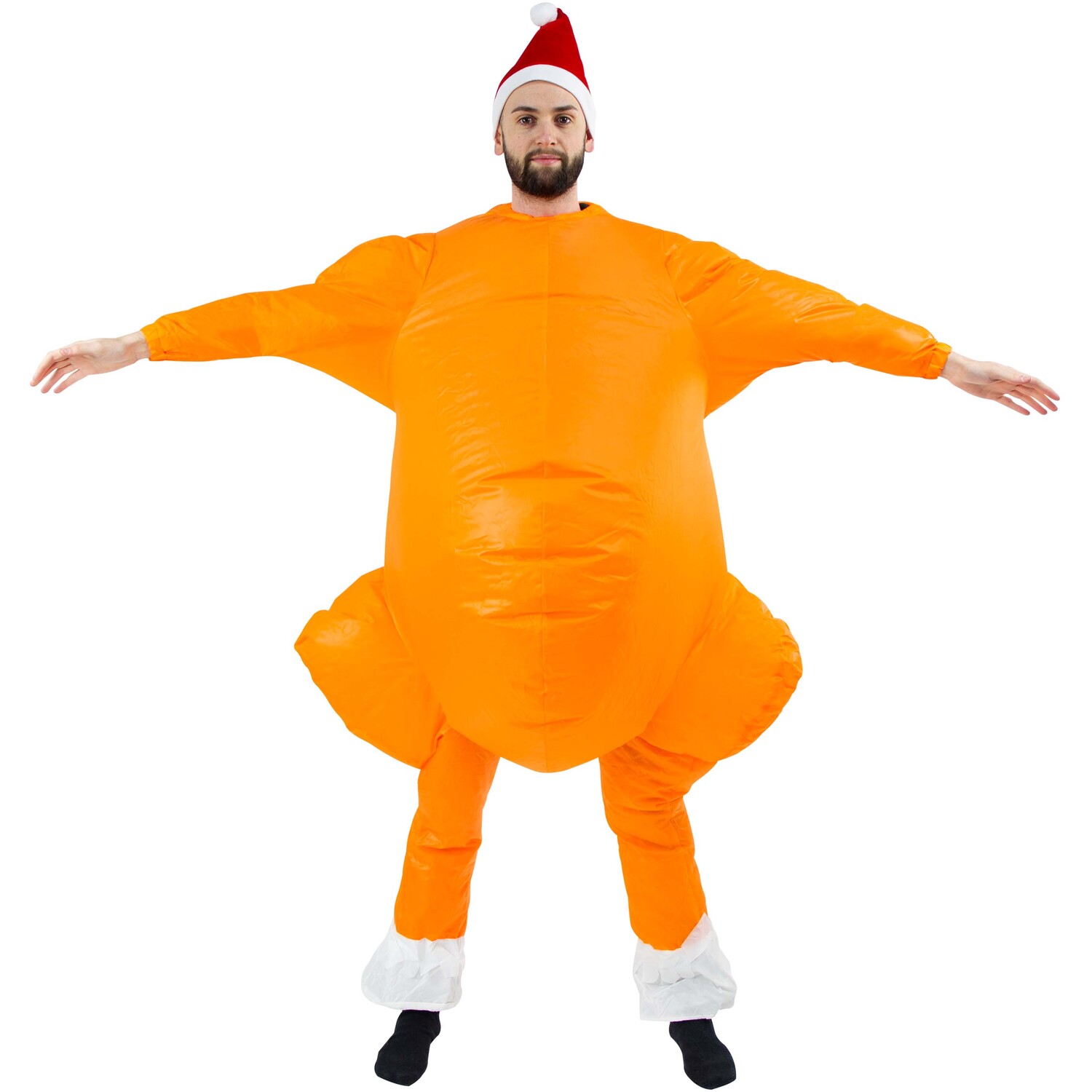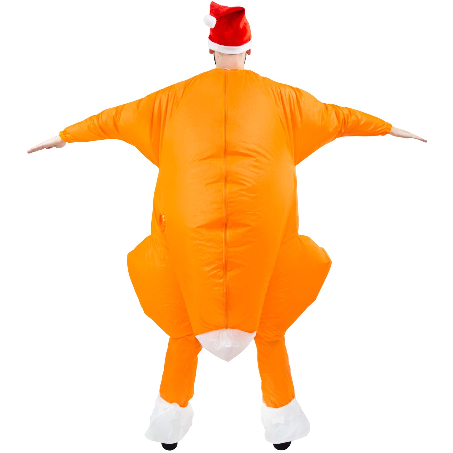This Inflatable Roast Turkey Costume is sure to bring the fun to your festivities. This fancy dress blow-up costume has a small fan inside, keeping you inflated. This costume is sure to stir up a laugh for your Christmas celebrations, and in a fun roast turkey design, you'll be the talk of the party!