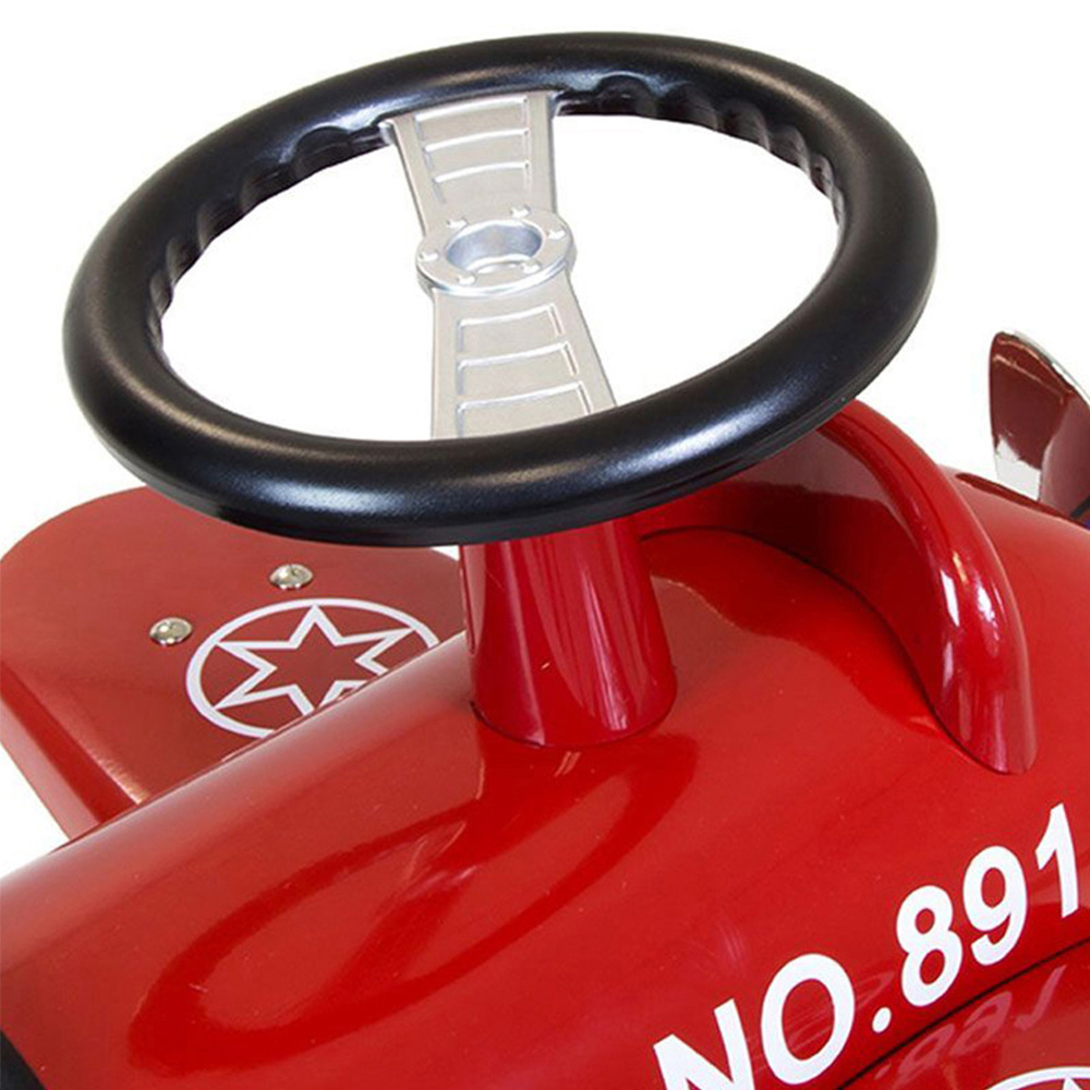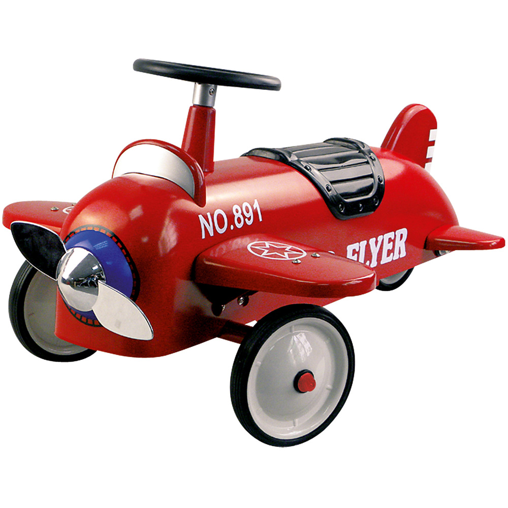 Children will love to zoom around on the wonderful red retro foot-to-floor metal ride-on aeroplane. The aeroplane is realistically styled with a propeller, which can spin. It has three large wheels and a large steering wheel which steers the two front wheels. Maximum weight capacity 25kg. Dimensions 77 x 48 x 36.5cm. Suits ages one year +.