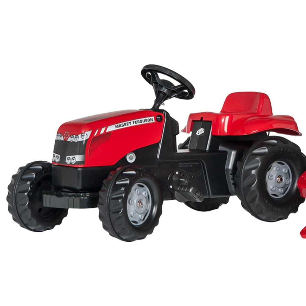 Encourage active play for your little one with this Robbie Toys Massey Ferguson Tractor and Trailer. This Massey Ferguson licensed large chain-driven tractor comes with anti-slip pedals, an opening bonnet, a rear hitch pin and a chunky steering wheel to make an excellent toy addition. Also, it includes a large detachable trailer for perfect playtime and completing your activities realistically. Ideal for ages 2.5 to 5 years. Size: 134 x 47 x 52 cm.