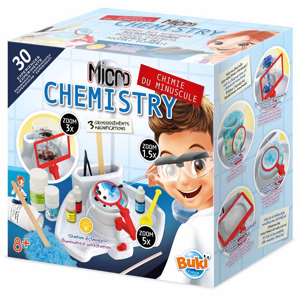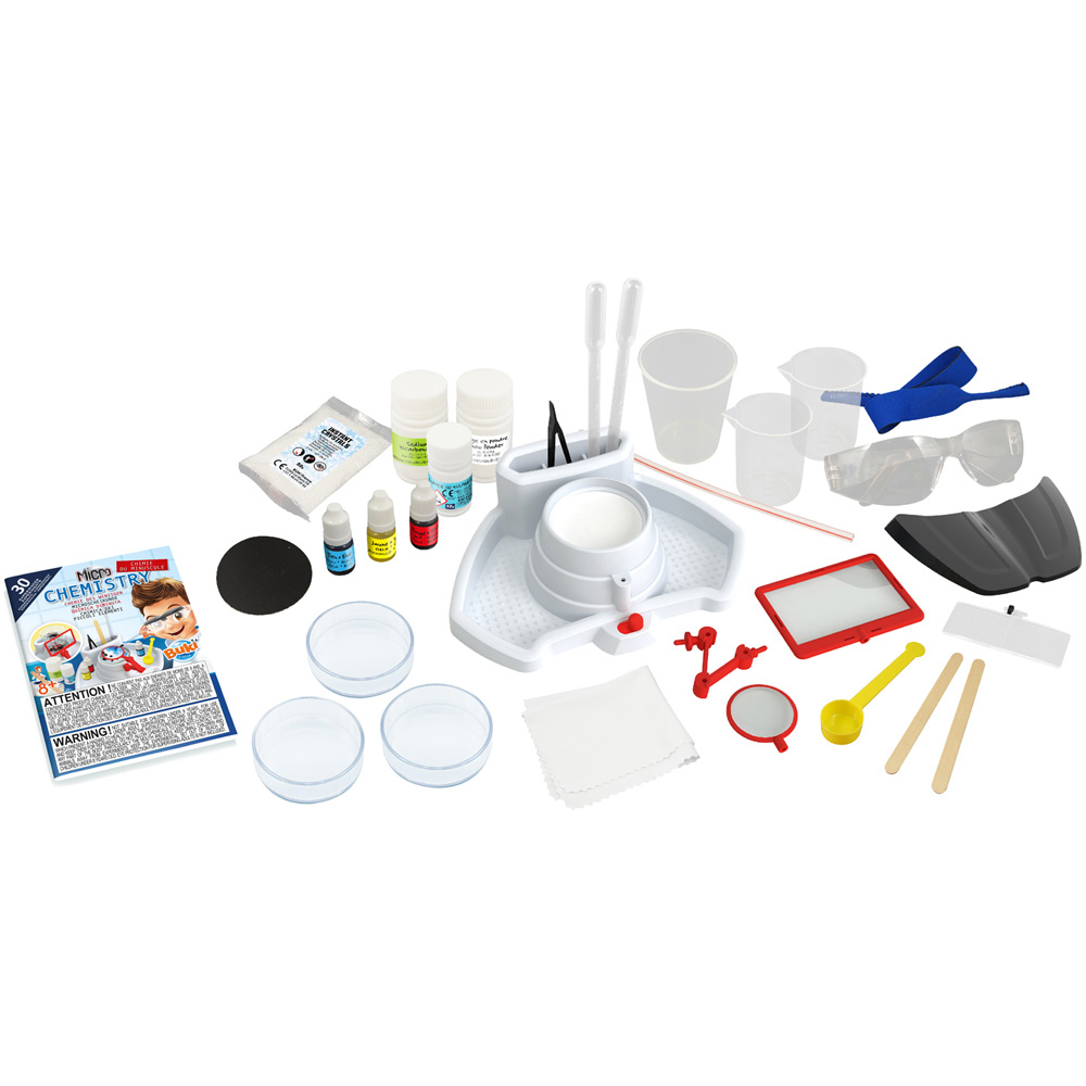 Unleash the tiny scientist within with Robbie Toys Micro Chemistry. This microchemistry kit is the perfect introduction to the fascinating world of chemistry. It has 30 safe experiments for an immersion in the microscopic world: colour diffusion, instant crystals, polymerisation, acid-base reaction and more. The kit contains three magnifying lenses to place on the bottom-lit workstation (requires three x AA batteries not supplied) and goggles for seeing in close-up. It comes with many accessories, some of which include pipettes, tweezers, measuring cups, beakers, Petri dishes, filters and much more. All 30 experiments are explained step by step in the included fully illustrated 84-page colour booklet. Perfect for children aged eight years and above.