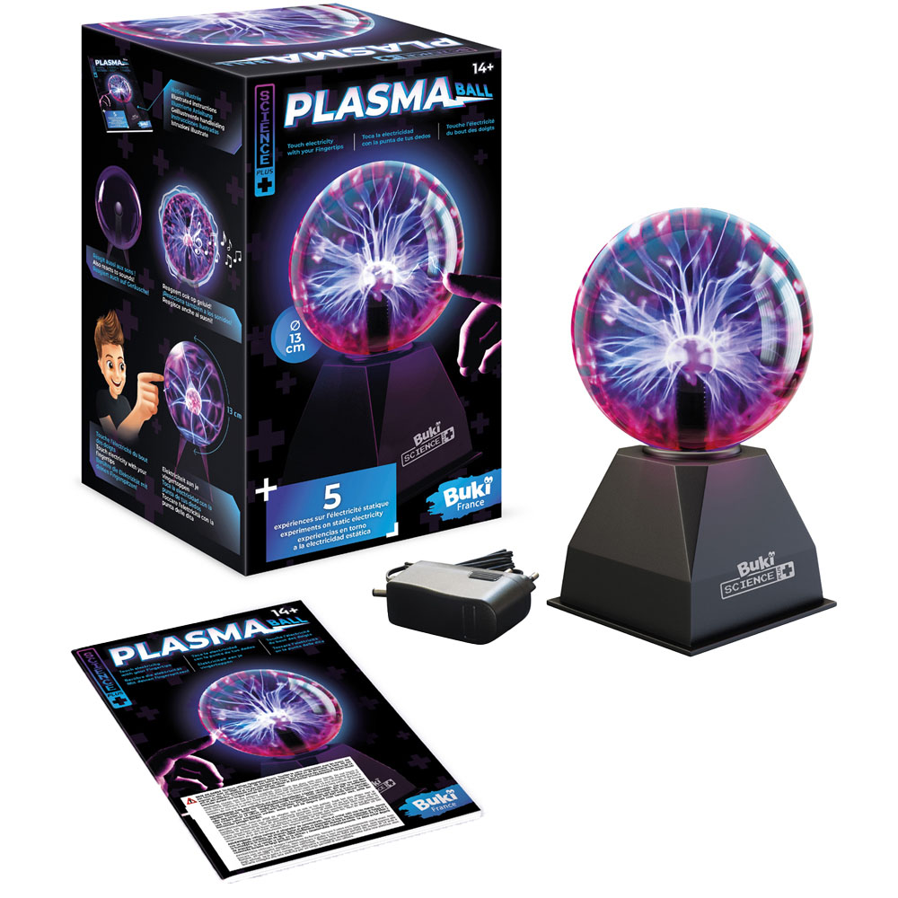 Prepare for a blast off to fun with this Robbie Toys Plasma Ball 13cm, an ideal toy for the science fan’s bedroom. It reacts to touch and creates harmless flashes of lightning bolts of electricity within the glass ball and has an on/off switch with an audio setting to use voice or music to make the plasma react inside the ball. A 12-page full-colour booklet explaining static electricity and electricity in nature, along with five step-by-step experiments on static electricity, is also included. It has a UK mains plug. Suitable for ages 14 and above.