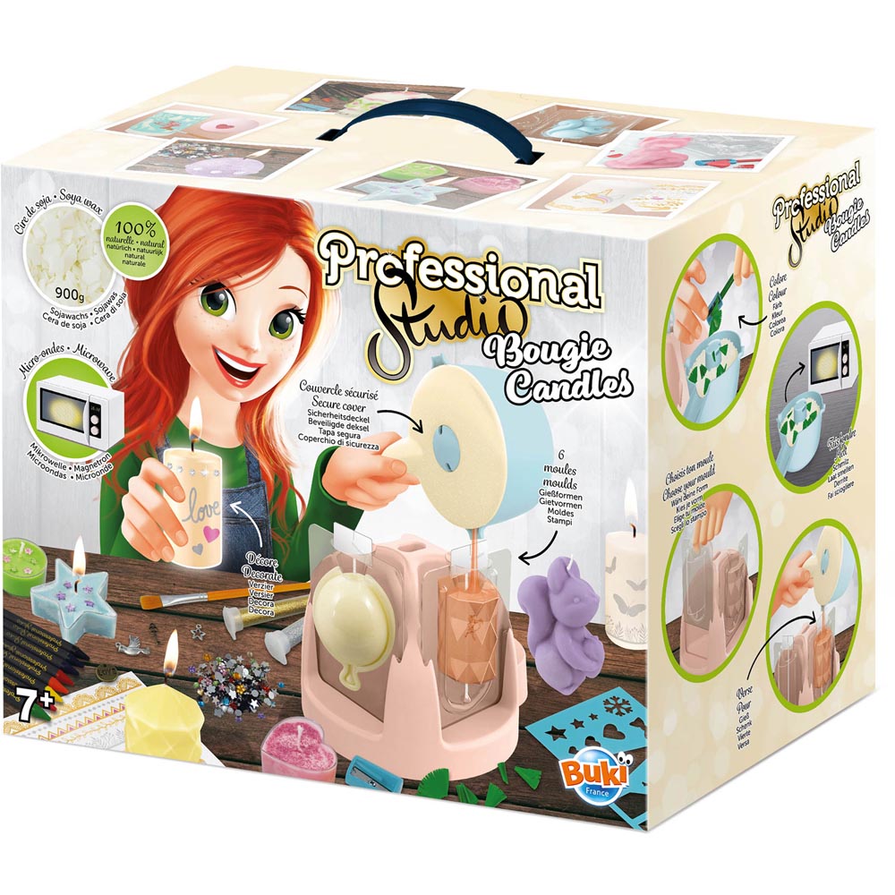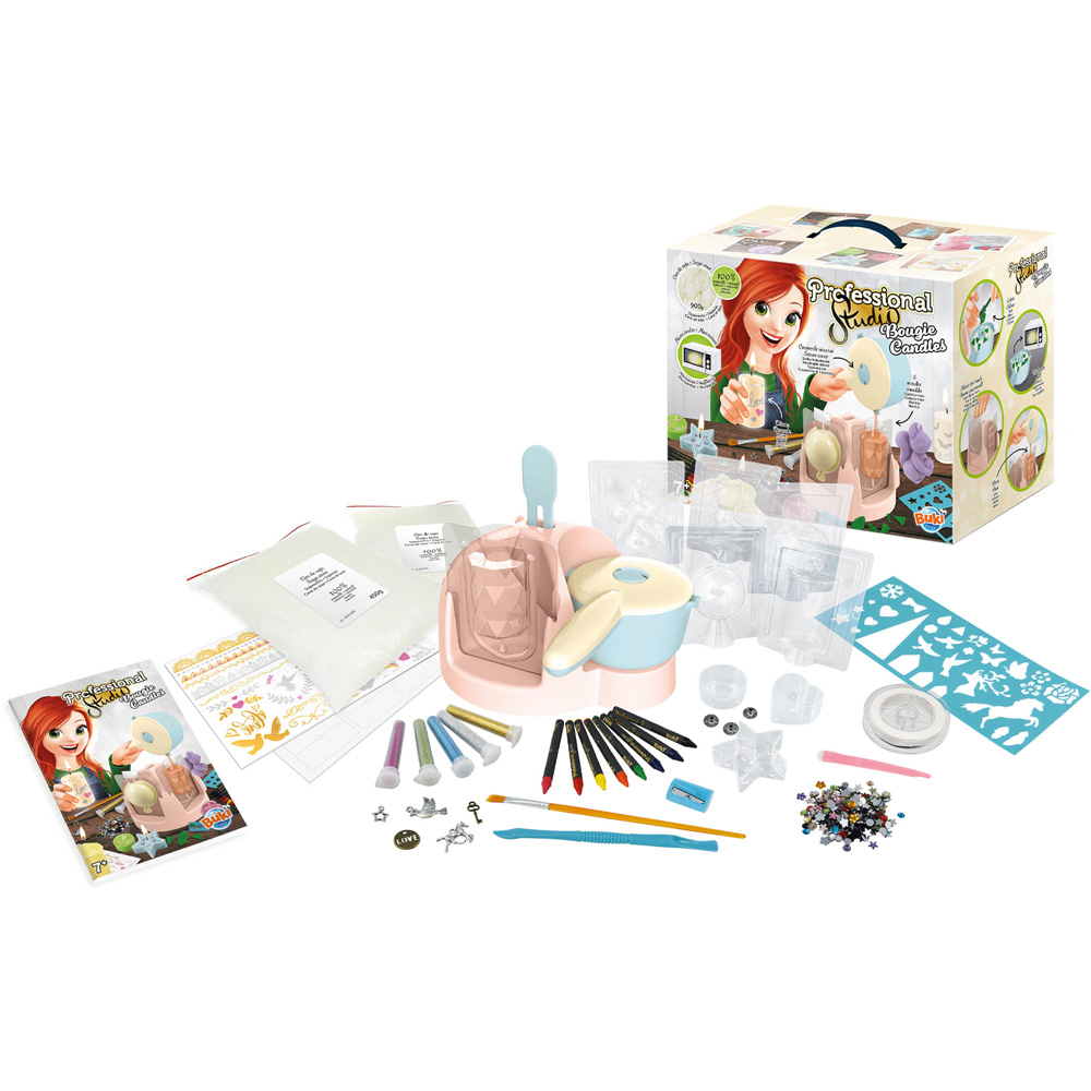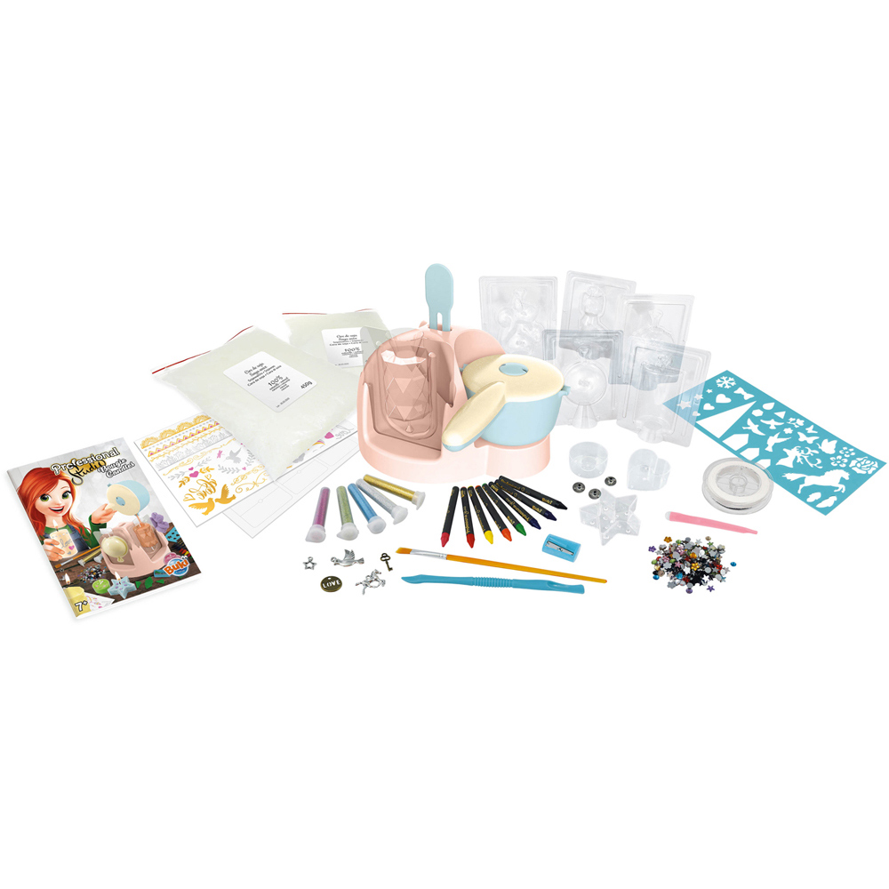 Ignite your creativity with the Robbie Toys Professional Studio Candles. This all-inclusive set provides you with everything you need to create and decorate your very own natural candles. With 900g of high-quality soya wax and cotton wicks at your disposal, you'll be able to produce candles that burn cleanly and beautifully. The secure container ensures the safe and easy melting of the soya wax in a microwave, making the process hassle-free. Let your imagination run wild as you explore the six transparent moulds and three metal shape cutters included in the set. With these versatile tools, you can bring to life nine different candle designs, each one a unique work of art. Personalize your creations with the addition of diamante, a gold-coloured pencil, and coloured wax, adding a touch of elegance and individuality to your candles. They make the perfect heartfelt gift for any occasion. The set also includes five pendants, eight crayons, a pencil sharpener, a paintbrush, five tubes of glitter, and a template. Unlock the secrets of candle making with the help of the 32-page full-colour booklet provided. The candles are suitable for ages seven and above.
