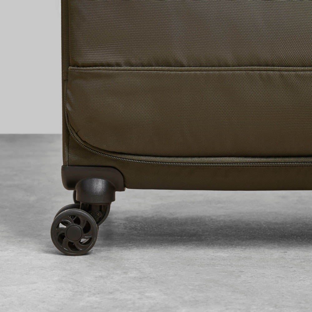 Elevate your travel experience with the Rock Luggage Paris Green Softshell Suitcase. Bienvenue Paris is a new range of soft-shell luggage, inspired by the eternal city of romance and adventure. Available in cabin, medium and large, Paris evokes the different sides of Europe’s most iconic city; including streets rich with history, beautifully picturesque skylines and a cosmopolitan agenda of things to see and do. Finished in a practical and resilient soft-shell outer case, the suitcase is available in a cultivated palette of olive green, purple, navy and black, ideal for the sophisticated, well-heeled traveller. Made from 100% polyester, light-weight and hard-wearing, this suitcase is perfect for those who demand more from their luggage. It incorporates a large front pocket, ideal for business travel and a TSA lock for security. Also, the telescopic, push-button handle, plus eight smooth rolling wheels with effortless 36-degree rotation make your journey a breeze. Built to last, all Rock products come with a 15-year manufacturer’s warranty against manufacturing defects arising from faulty workmanship or materials. Size: Large. Capacity: 92L.