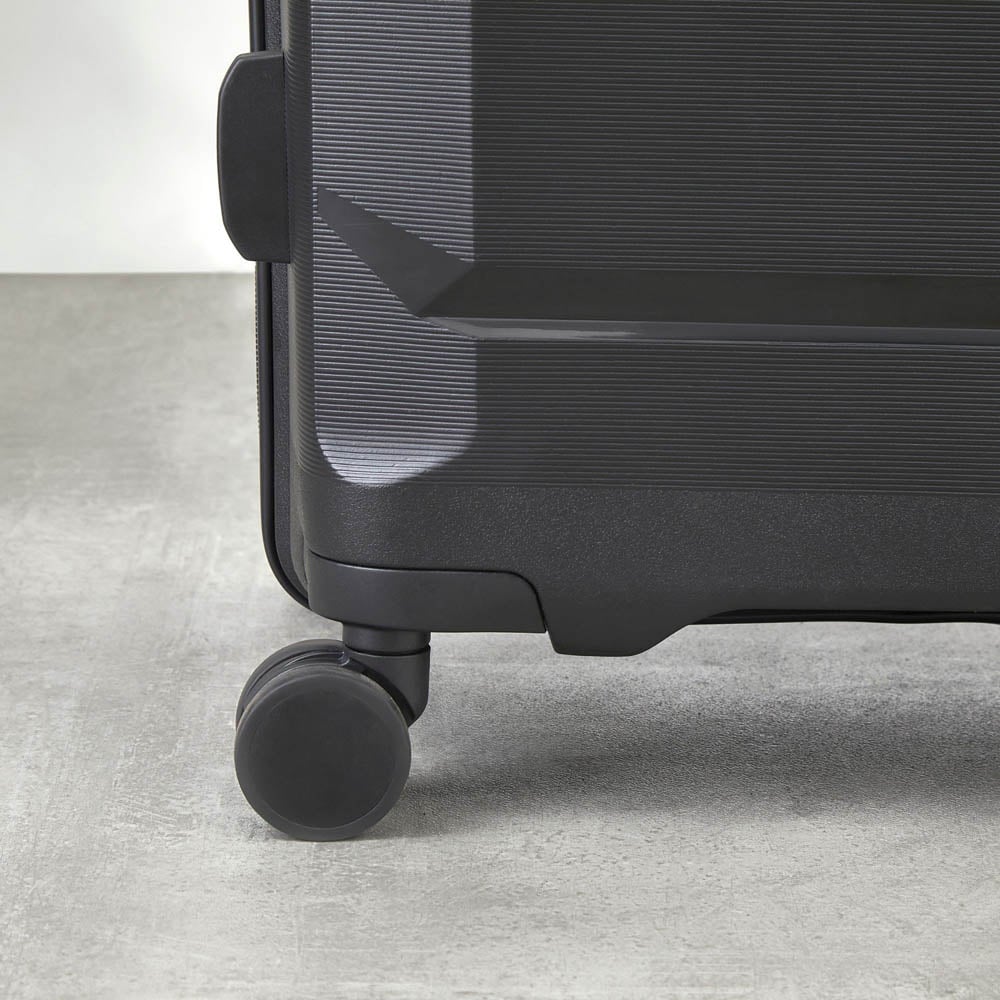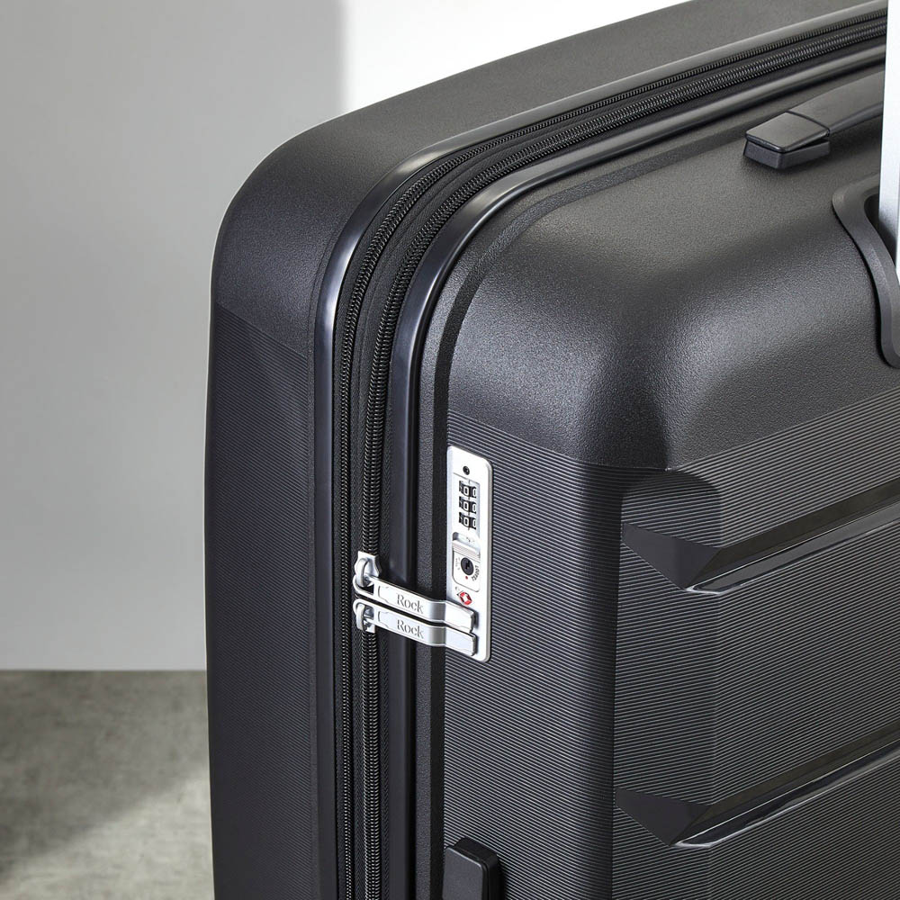 Make travel easy and convenient with the Rock Luggage Tulum Black Hardshell Expandable Suitcase. Tough and durable, the rock hard-shell suitcase is made with ultra-strong polypropylene to provide impact-resistance. Featuring an expandable design, you can leave your packing worries behind with its expander zip that can be opened to increase the volume of the case. Also, this aspect provides valuable additional packing capacity for any last-minute extras or new purchases that you may need for your trip. Practical and stylish, the eight smooth rolling wheels and telescopic, push-button handle will help you glide effortlessly on your travels. For complete peace of mind, the suitcase is integrated with a TSA combination lock to secure your belongings. Plus, the interior has a luxurious soft touch full lining and a mesh divider section. The design additionally features a convenient zipped inside pocket and elasticated packing straps to keep your clothes securely in place. Built to last - all Rock products come with a 15-year manufacturer's warranty against manufacturing defects arising from faulty workmanship or materials. Medium: 63 to 71L.