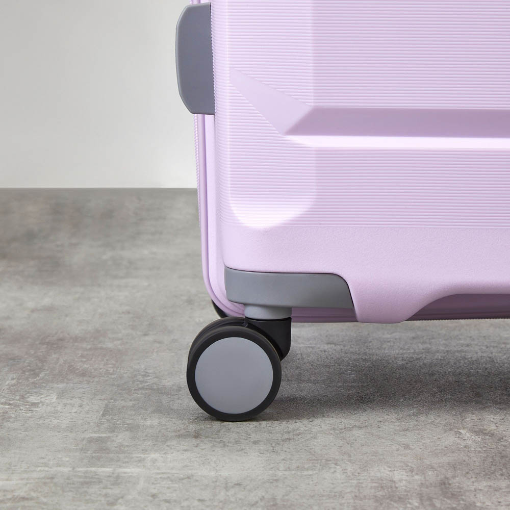 Make a statement wherever you go with the Rock Luggage Tulum Purple Hardshell Expandable Suitcase. Tough and durable, the rock hard-shell suitcase is made with ultra-strong polypropylene to provide impact-resistance. Featuring an expandable design, you can leave your packing worries behind with its expander zip that can be opened to increase the volume of the case. Also, this aspect provides valuable additional packing capacity for any last-minute extras or new purchases that you may need for your trip. Practical and stylish, the eight smooth rolling wheels and telescopic, push-button handle will help you glide effortlessly on your travels. For complete peace of mind, the suitcase is integrated with a TSA combination lock to secure your belongings. Plus, the interior has a luxurious soft touch full lining and a mesh divider section. The design additionally features a convenient zipped inside pocket and elasticated packing straps to keep your clothes securely in place. Built to last - all Rock products come with a 15-year manufacturer's warranty against manufacturing defects arising from faulty workmanship or materials. Small: 36 to 42L.