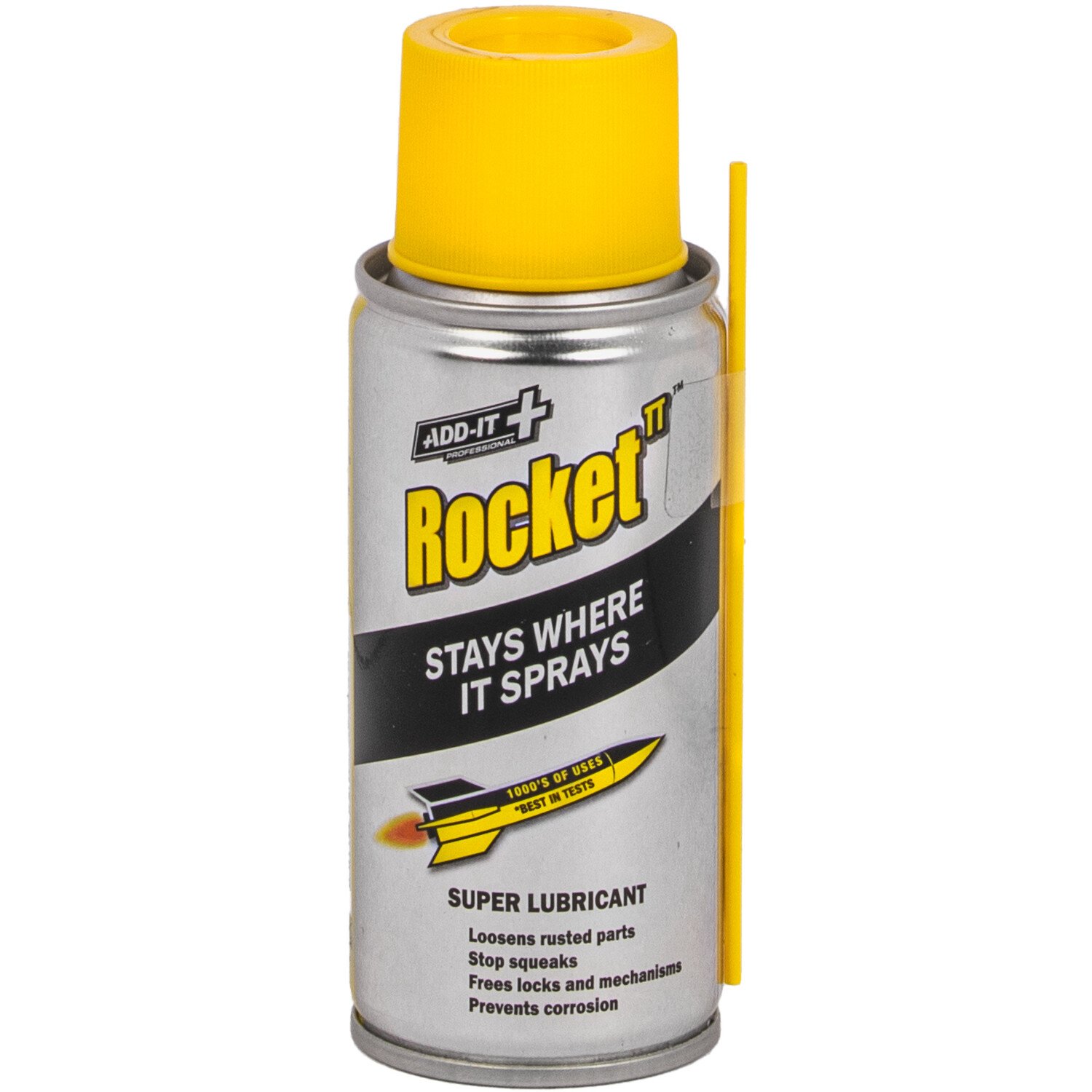 Effective and versatile, this Rocket TT Multi Use Super Lubricant is an essential addition to your DIY kit and comes with a cap and straw. Perfect for stopping squeaks and lubricating moving elements, it penetrates and loosens corroded and seized nuts, bolts, cables and more. Not only can it remove glue, pencil and gum marks from most surfaces, but it also leaves a protective water-resistant anti-corrosion coating.