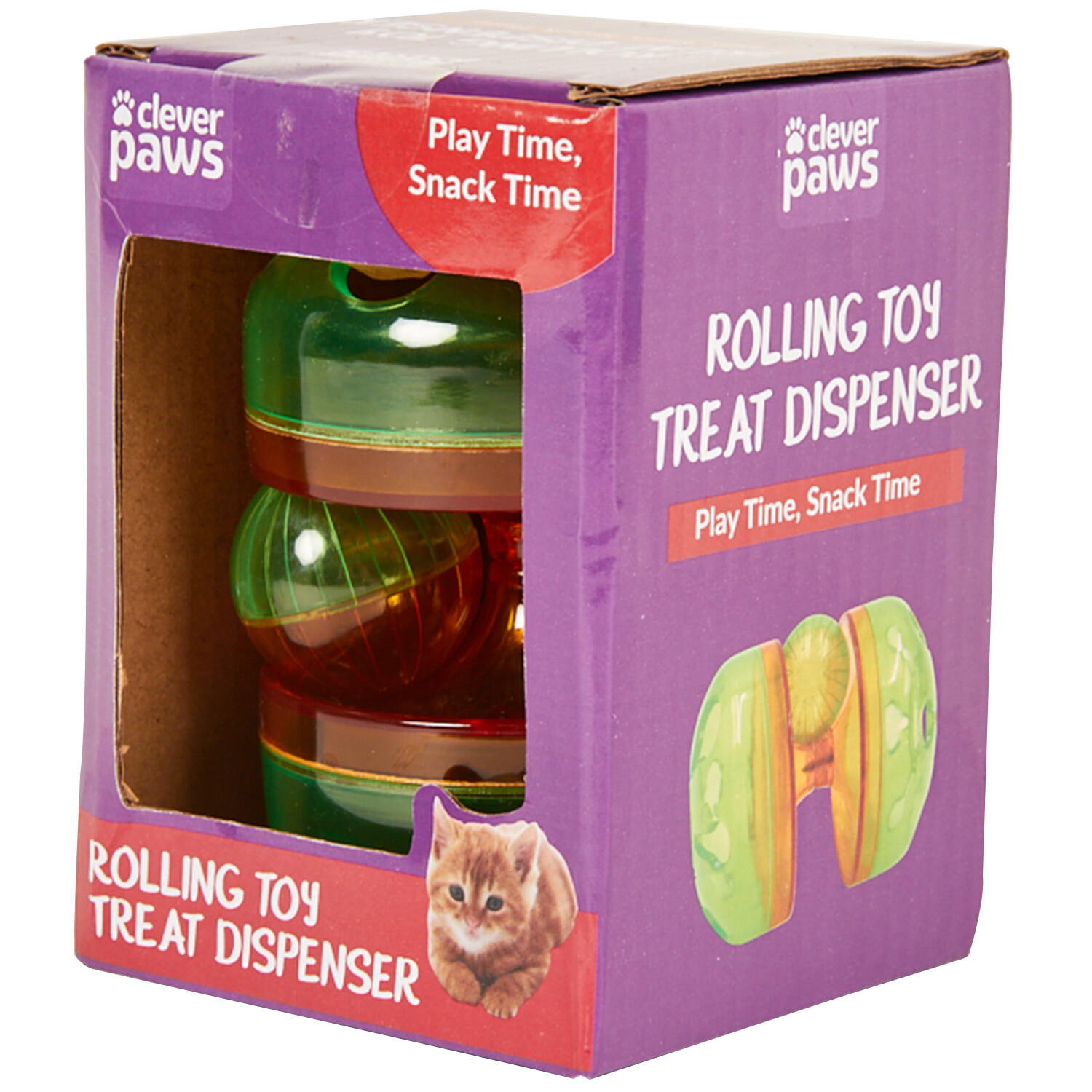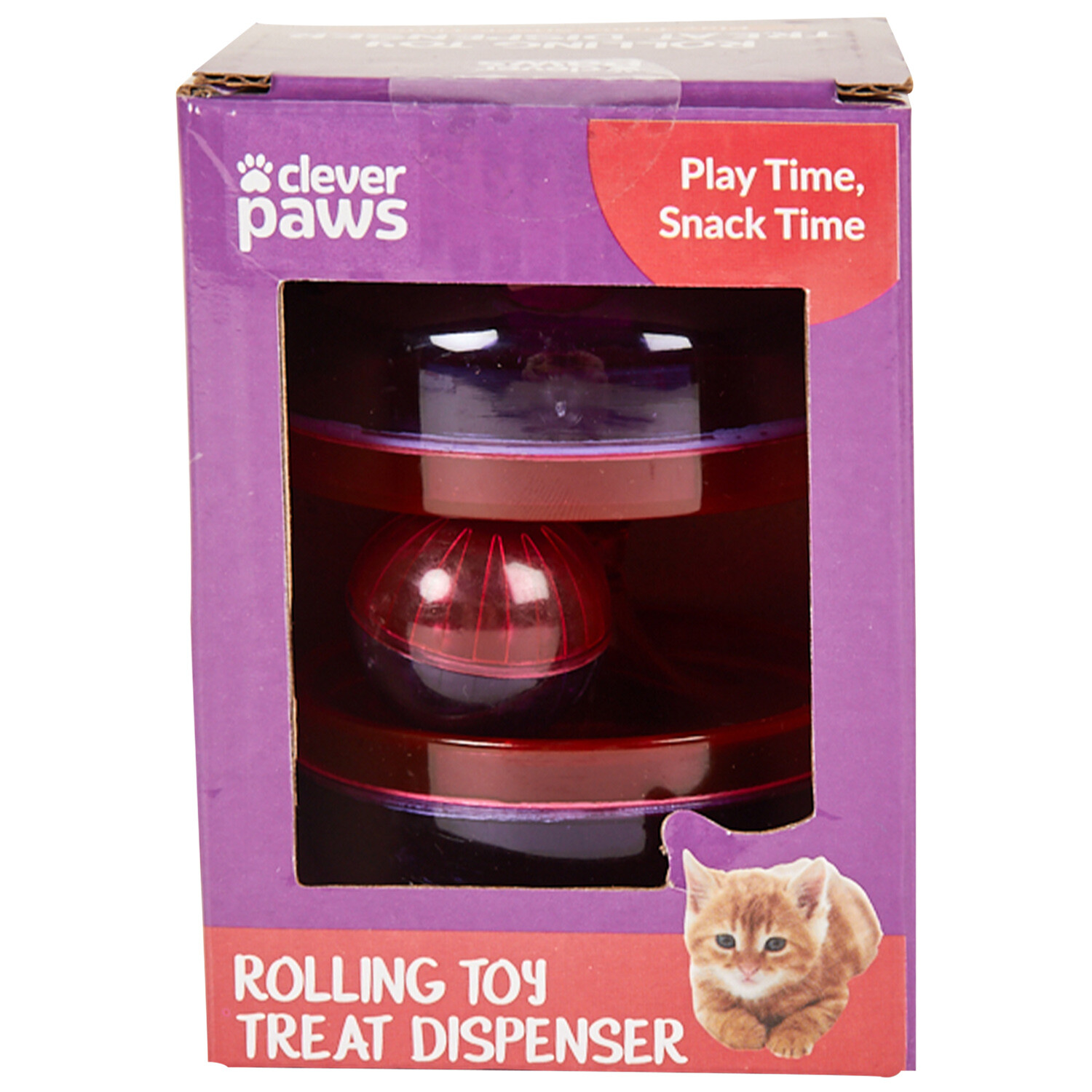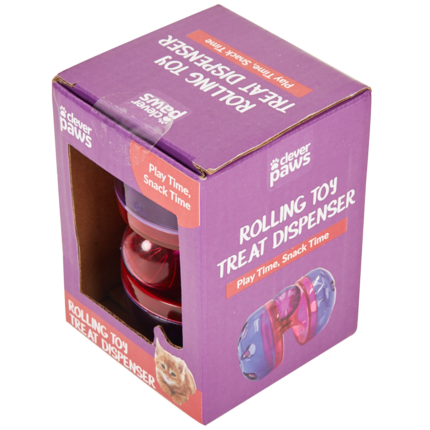 Encourage your feline friend to work and exercise to earn their treats with this Rolling Toy Treat Dispenser. Designed to be a fun toy that helps to regulate portion control, it easily dispenses treats as your cat plays, pounces and moves the ball. Please ensure the treat size and amount being dispensed are suitable for the age of the cat.