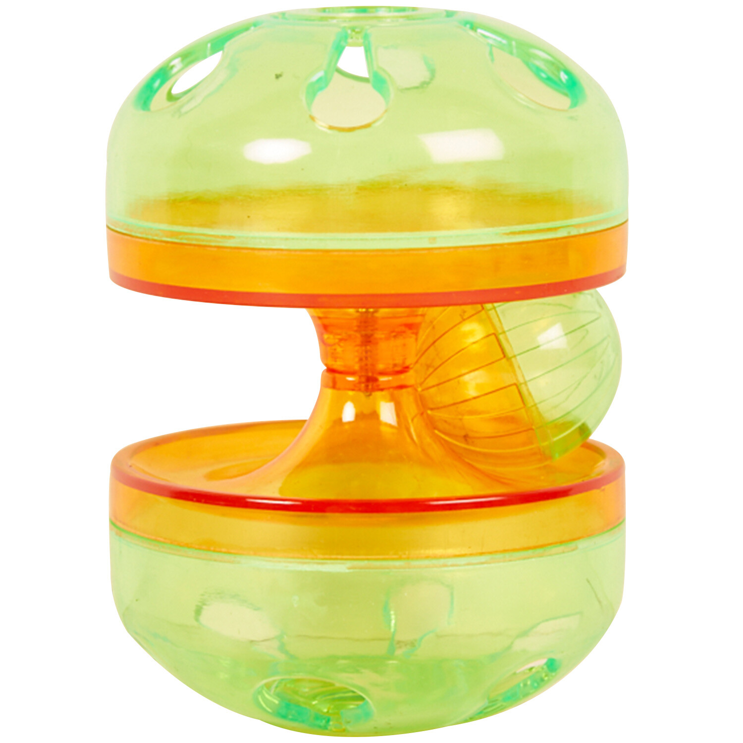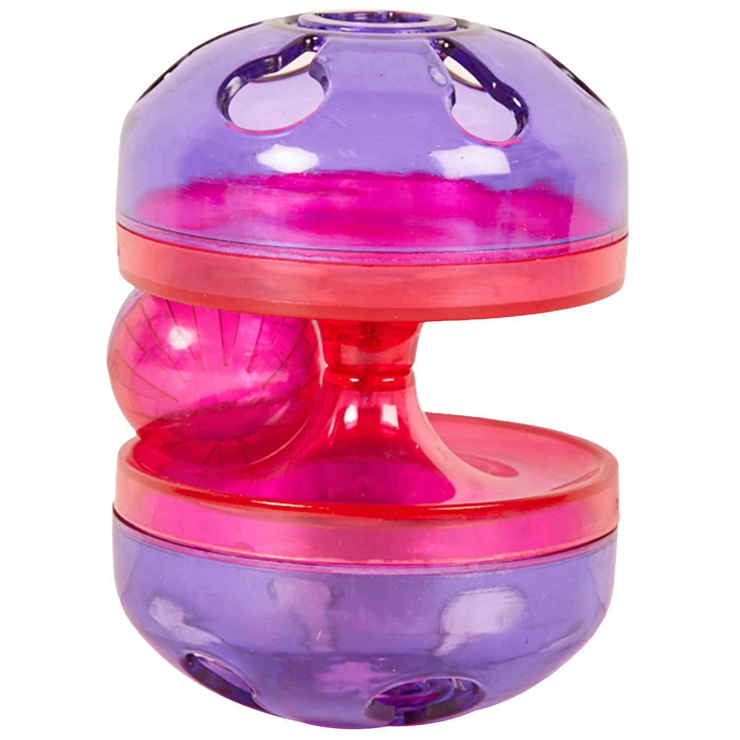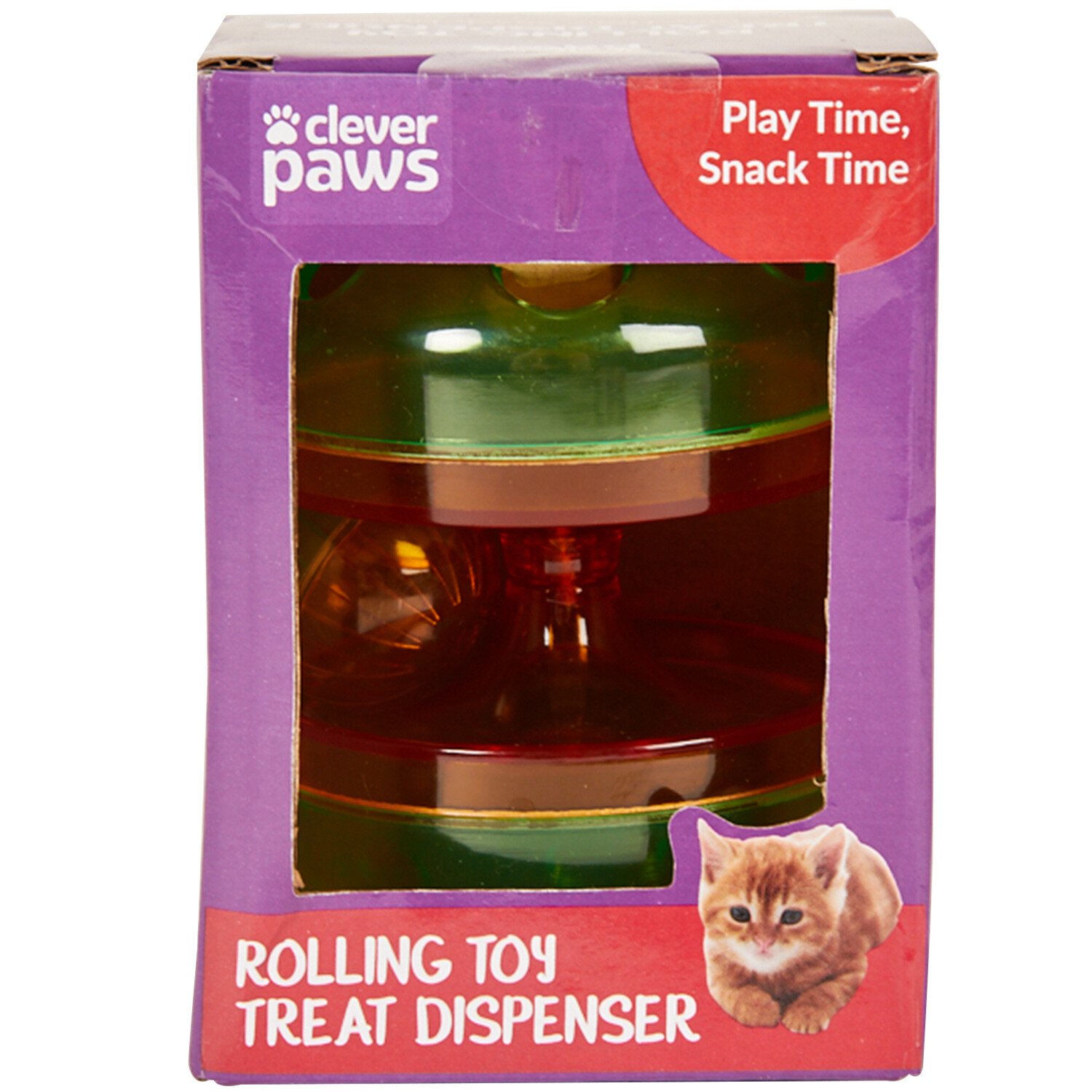 Encourage your feline friend to work and exercise to earn their treats with this Rolling Toy Treat Dispenser. Designed to be a fun toy that helps to regulate portion control, it easily dispenses treats as your cat plays, pounces and moves the ball. Please ensure the treat size and amount being dispensed are suitable for the age of the cat.
