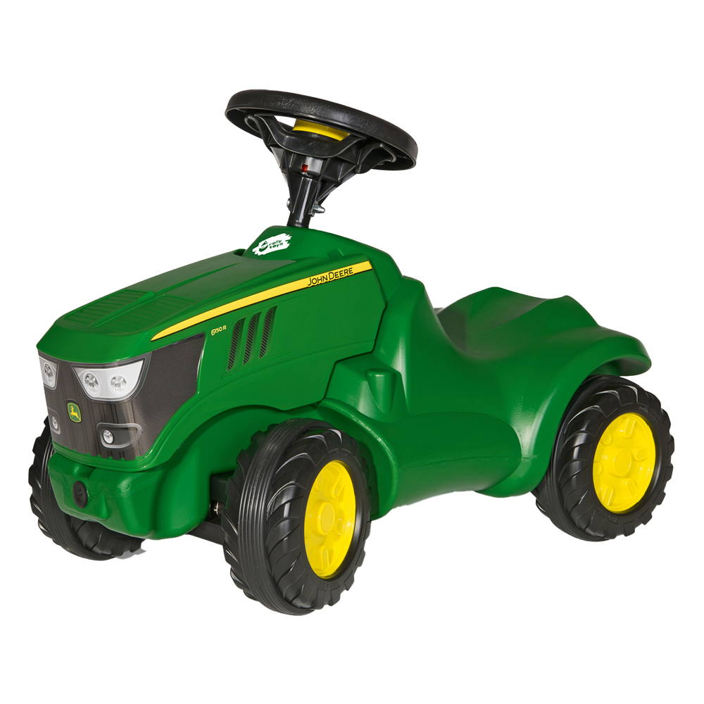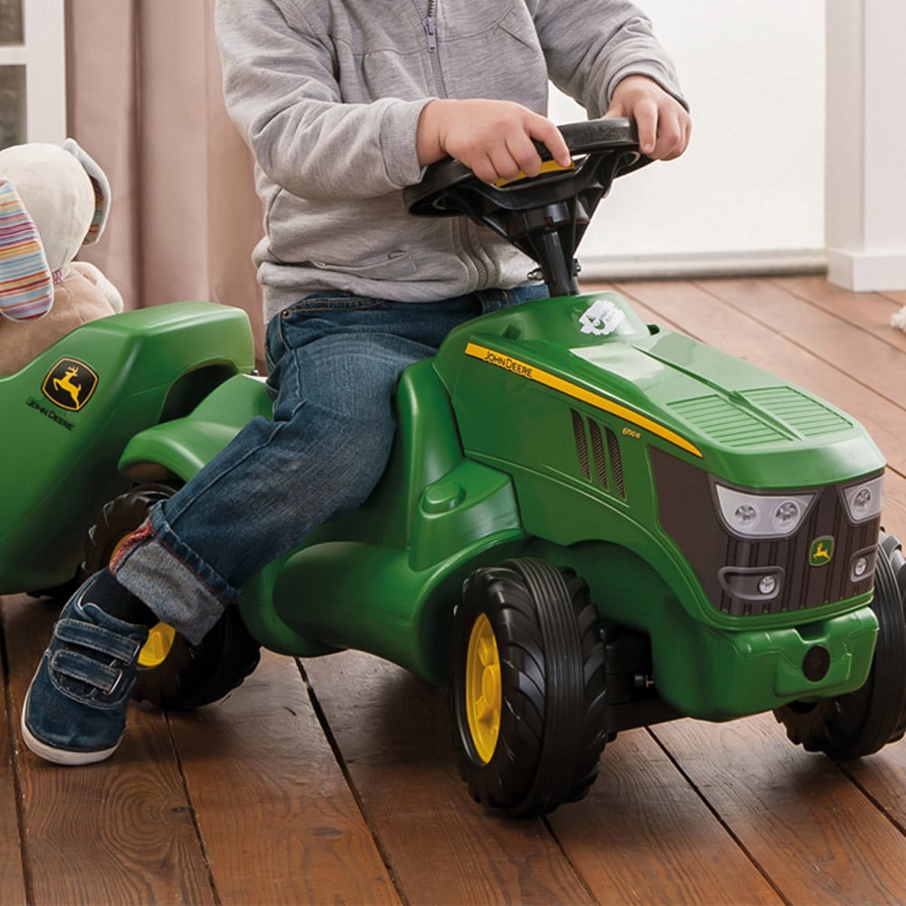 Encourage active play for children with the Rolly Toys John Deere 6150R Mini Trac. This realistically styled mini foot-to-floor ride-on tractor features features an opening bonnet, a steering wheel with an integral squeaky horn, large whisper quiet wheels and a knee indentation that enables your child to scoot along. Suits ages 1.5 - 4 years. Dimensions 61 x 30 x 41 cm.