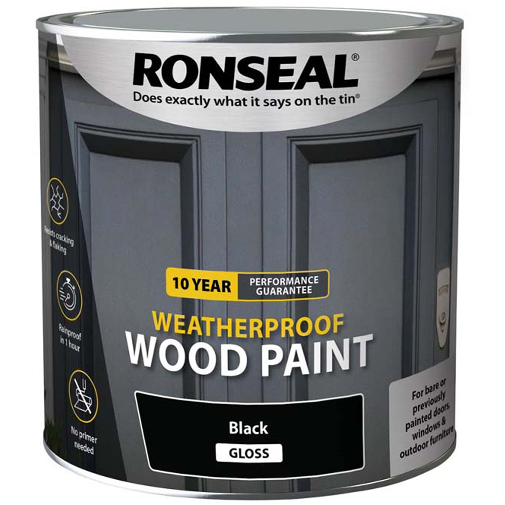 Ronseal 10 Year Weatherproof Wood Paint 2 in 1 doesn't need a primer, not even on bare wood. It's weatherproof in just 1 hour, so it's the quickest way to keep doors and windows looking great. It's guaranteed not to crack, peel or blister for 10 years. This product covers 12 m²/litre, needs 2 to 3 coats, can be applied with a brush, is dry to touch in 1 hour and if needed can be recoated in 1 hour. To prepare bare wood, use 120 grit sandpaper to lightly sand the wood for an even finish. Once the dust has settled, wipe the area with white spirit. Any holes or cracks can be filled in with wood filler. To prepare previously painted wood, sand flakes away to bare wood. This is easiest to do with an electric sander. Once the dust has settled, wipe it away with white spirit and a damp cloth. Give your paint a thorough stir to mix the colour pigments. Apply the paint in the direction of the woodgrain with a synthetic brush. Leave your first coat to dry for four hours. Apply the second coat. If you’re painting bare wood, you might still be able to see the grain after two coats. If that’s the case, wait four hours before applying a third coat. Your last coat will be weatherproof in one hours.
