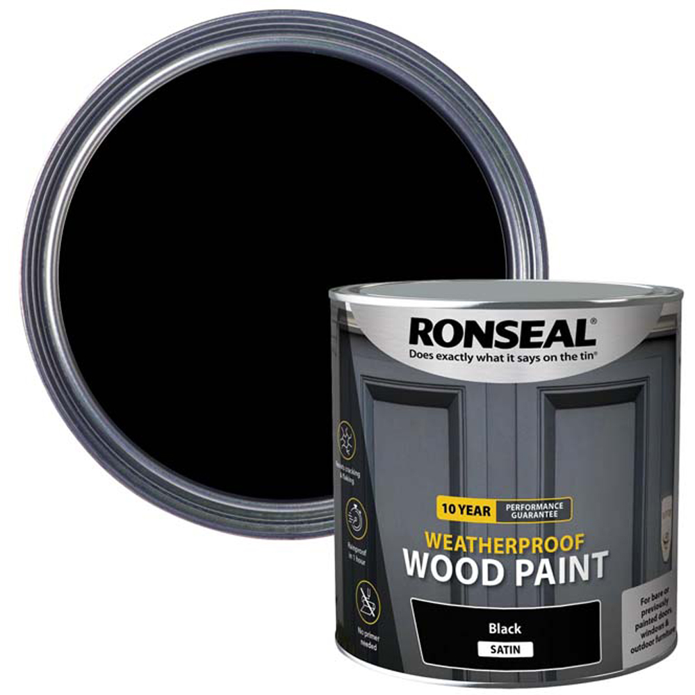 Ronseal 10 Year Weatherproof Wood Paint 2 in 1 doesn't need a primer, not even on bare wood. It's weatherproof in just 1 hour, so it's the quickest way to keep doors and windows looking great. It's guaranteed not to crack, peel or blister for 10 years. This product covers 12 m²/litre, needs 2 to 3 coats, can be applied with a brush, is dry to touch in 1 hour and if needed can be recoated in 1 hour. To prepare bare wood, use 120 grit sandpaper to lightly sand the wood for an even finish. Once the dust has settled, wipe the area with white spirit. Any holes or cracks can be filled in with wood filler. To prepare previously painted wood, sand flakes away to bare wood. This is easiest to do with an electric sander. Once the dust has settled, wipe it away with white spirit and a damp cloth. Give your paint a thorough stir to mix the colour pigments. Apply the paint in the direction of the woodgrain with a synthetic brush. Leave your first coat to dry for four hours. Apply the second coat. If you’re painting bare wood, you might still be able to see the grain after two coats. If that’s the case, wait four hours before applying a third coat. Your last coat will be weatherproof in one hours.