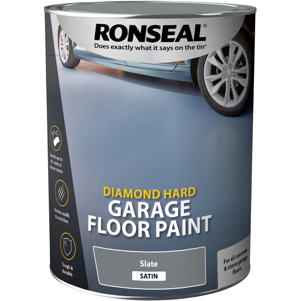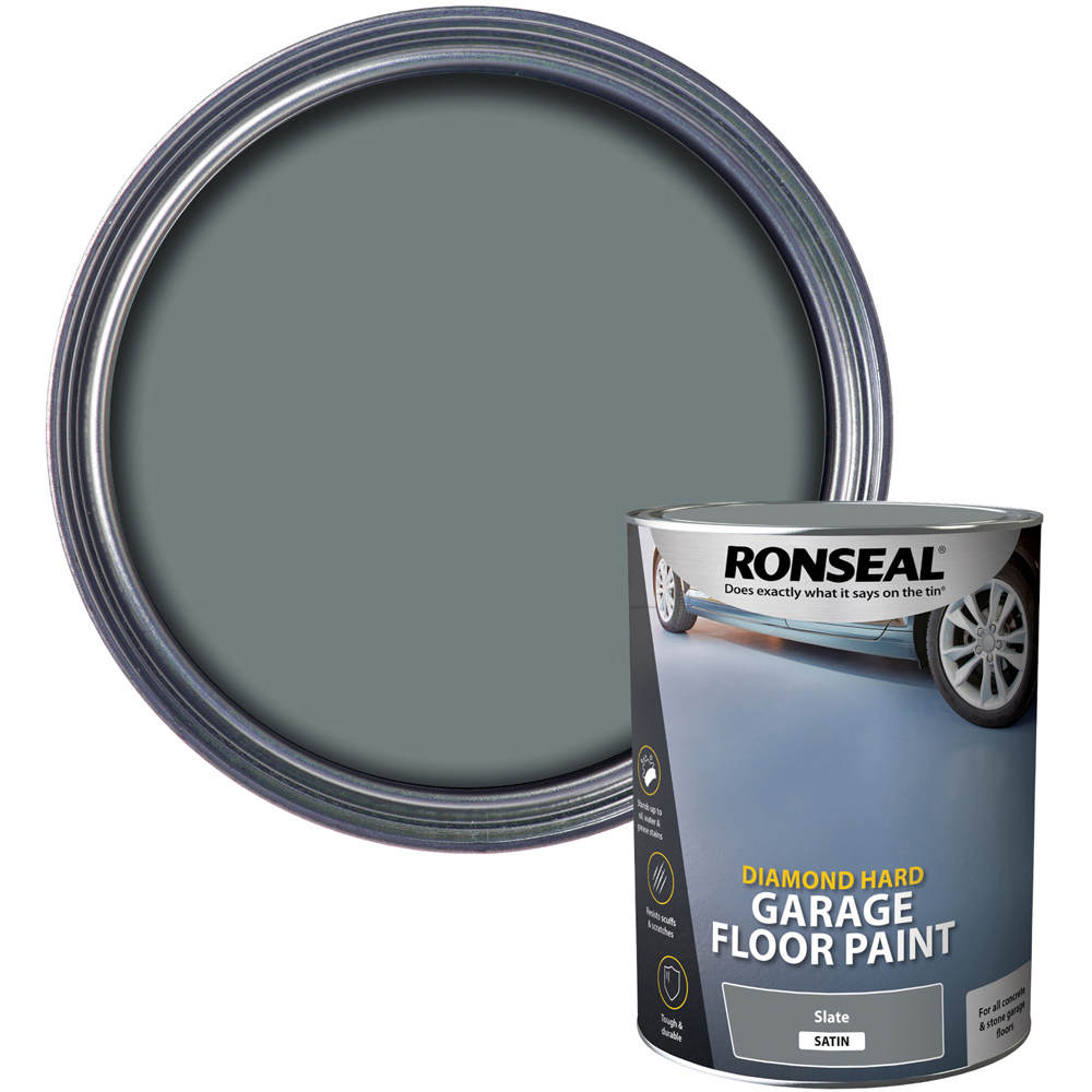 Ronseal Diamond Hard Garage Floor Paint is tough enough to park your car on and withstand oil, grease and petrol spills. It is touch dry in four hours, covers up to 12 m² per litre and has a smooth finish so your floor is protected and looks great. This product covers 12 m²/litre, needs 2 to 3 coats, can be applied with a brush, roller or pad, is dry to touch in 4 hours and if needed can be recoated in 4 hours. Open all your doors and windows to ensure the best ventilation and move everything out of your garage. Clean up any oil and grease stains (oven cleaner and some vigorous scrubbing may work, otherwise call in a professional). To prepare bare garage floors for painting - Newly laid concrete needs to be left alone to set for a month before you can paint it. Use a wire brush to clean the floor and remove dust and dirt. Concrete floors can react to the paint and crack or blister so seal the floor first with a stabilising solution. Or you can dilute the paint with 10% water. To prepare previously painted garage floors - Clean the floor with a wire brush to dislodge dust and dirt and wipe it down with white spirit. Use a large brush, roller or pad to apply the paint. Give the paint a thorough stir. Start at the far end of the garage and paint towards the door. Work in small sections and remember to not paint yourself into a corner! For the best coverage, you’ll need to apply two or three coats. Leave four to six hours between coats for the best effect. The floor will be hardest after 72 hours. That’s when you can start moving your car and things back into the garage.