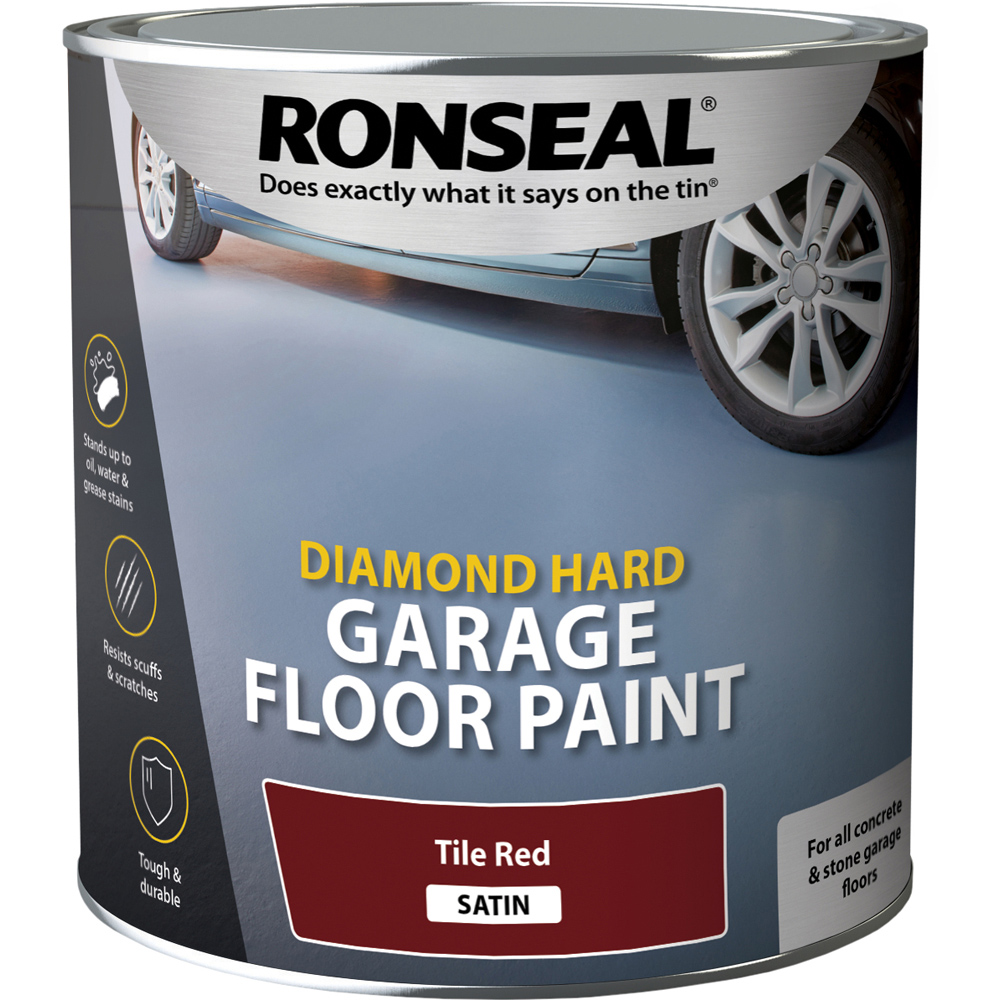 Ronseal Diamond Hard Garage Floor Paint is tough enough to park your car on and withstand oil, grease and petrol spills. It is touch dry in four hours, covers up to 12 m² per litre and has a smooth finish so your floor is protected and looks great. This product covers 12 m²/litre, needs 2 to 3 coats, can be applied with a brush, roller or pad, is dry to touch in 4 hours and if needed can be recoated in 4 hours. Open all your doors and windows to ensure the best ventilation and move everything out of your garage. Clean up any oil and grease stains (oven cleaner and some vigorous scrubbing may work, otherwise call in a professional). To prepare bare garage floors for painting - Newly laid concrete needs to be left alone to set for a month before you can paint it. Use a wire brush to clean the floor and remove dust and dirt. Concrete floors can react to the paint and crack or blister so seal the floor first with a stabilising solution. Or you can dilute the paint with 10% water. To prepare previously painted garage floors - Clean the floor with a wire brush to dislodge dust and dirt and wipe it down with white spirit. Use a large brush, roller or pad to apply the paint. Give the paint a thorough stir. Start at the far end of the garage and paint towards the door. Work in small sections and remember to not paint yourself into a corner! For the best coverage, you’ll need to apply two or three coats. Leave four to six hours between coats for the best effect. The floor will be hardest after 72 hours. That’s when you can start moving your car and things back into the garage.
