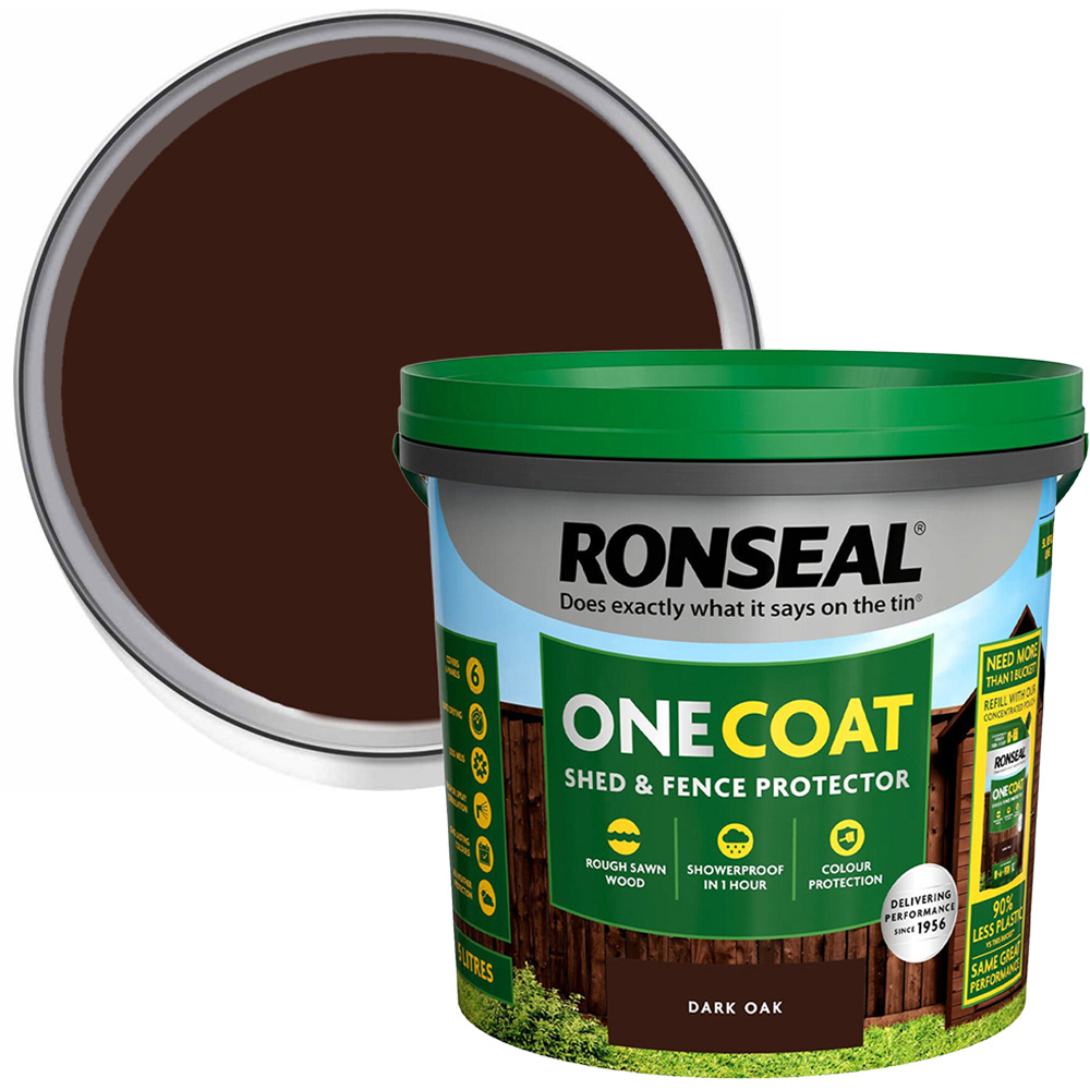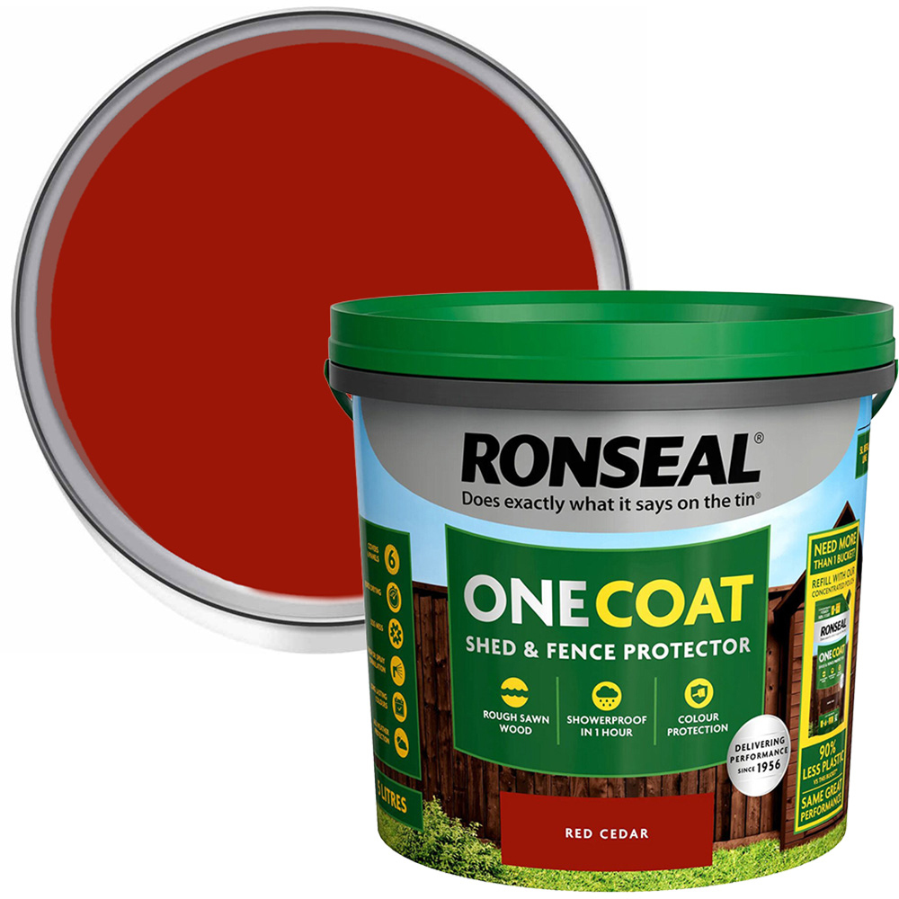 Protect outdoor wooden surfaces with this Ronseal One Coat Shed and Fence Protector. Weather-resistant, this formula offers long-lasting protection against rain, frost, snow and sun, meaning you'll get lasting colour and protection. Perfect for saving time when you need to paint your sheds or fences, it quickly dries and becomes showerproof in just one hour reducing mess. Easy to apply, simply brush or spray for instant results. Available in various shades, this protector is a must-have to enhance the wood's appearance.