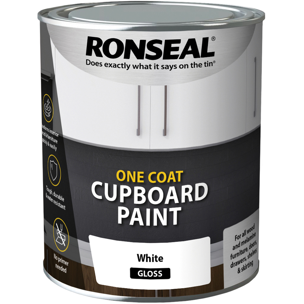 Ronseal One Coat Cupboard Paint can transform your kitchen cupboards, doors and wooden furniture in just one coat. It doesn't even need a primer. It's durable, so it’ll stand up to knocks, scuffs and spills. This product covers 8 m²/litre, needs 1 coat, can be applied with a brush, is dry to touch in 1 hour and if needed can be recoated in 1 hour. Make sure your room is above 10°C and open a window to keep it ventilated. Cover anything you don’t want to get paint over. If you’re painting cupboard doors or drawers, the easiest way to do this is to take them off the units and lay them flat. If your wood is in good condition, just give it a light sand with 240grit sandpaper. If the paint is flaking or cracked, you’ll need to sand it back to bare wood. Use 120grit sandpaper and sand in the direction of the woodgrain. Remember to wear a face mask. Vacuum any dust and wipe down with a damp cloth. Fill any holes or cracks with Ronseal Multi Purpose or High Performance Wood Filler. Be careful preparing any wood that was painted before 1960, as it may be coated with lead paint. Give the paint a stir, then paint it on with a synthetic brush or foam roller in the direction of the woodgrain. It’ll be touch dry in just 1 hour. Most of the time one coat is all you ever need. But, if you’re painting over a bold colour you may need a second coat. If this is the case, leave the first coat to dry for 4 hours. Then give it a light sand with 240grit sandpaper and wipe with a damp cloth. Once the surface is dry put the second coat on.
