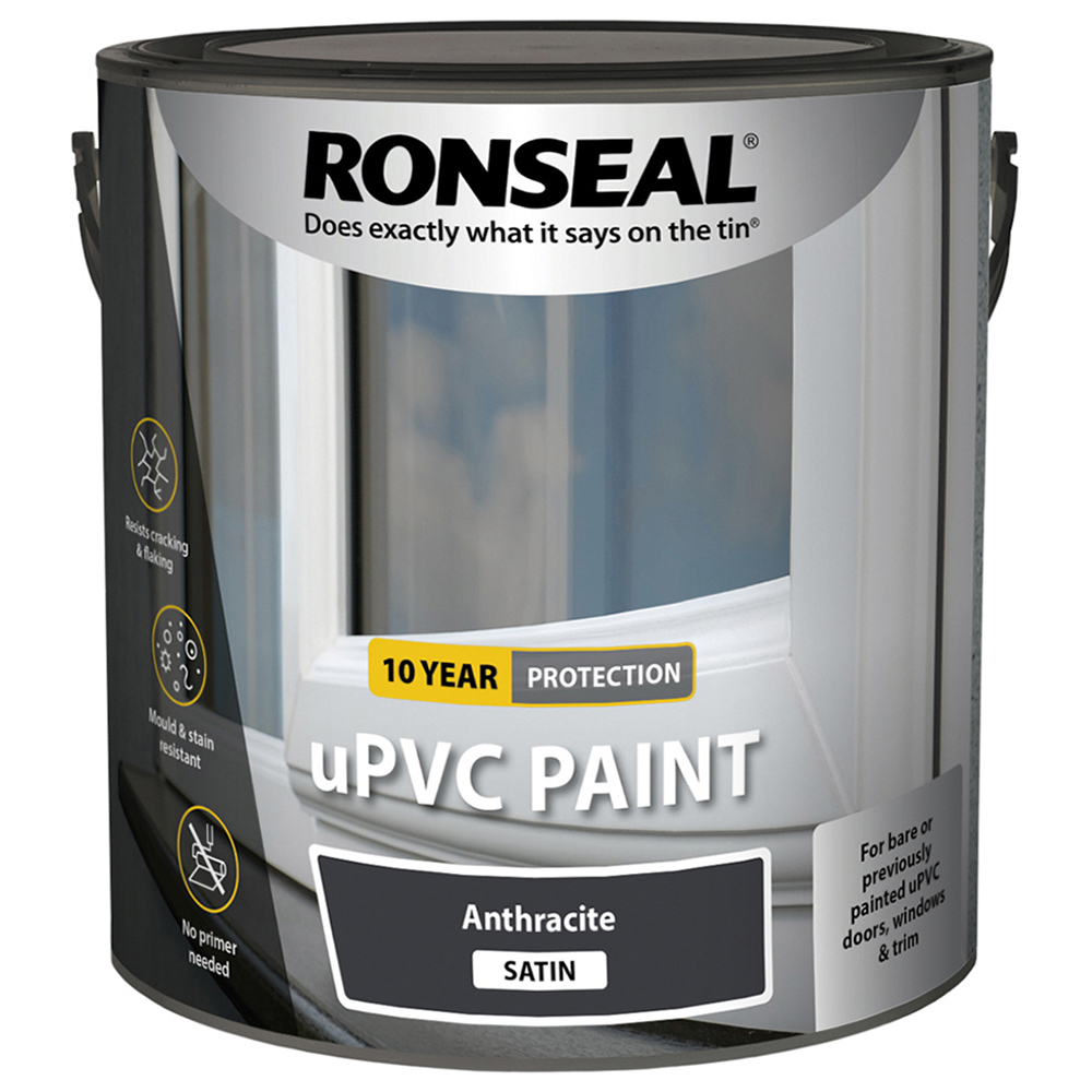 Ronseal uPVC Paint revamps your uPVC windows and doors with a long lasting, durable formula. Flexible to prevent cracking and mould resistant to minimize staining, this uPVC paint is ready to withstand whatever the weather throws at it. You can apply Ronseal uPVC Paint directly to the surface without the need of a primer and it'll be rain ready in 1 hour. This product covers 6.5 m²/litre, needs 2 to 3 coats, can be applied with a brush, roller or sprayer, is dry to touch in 1 hour and if needed can be recoated in 1 hour. When using Ronseal's uPVC Paint, wait for a warm dry day, above 10°C, and not likely to rain. Cold, wet weather can stop the paint from drying properly. Make sure the area you're painting is clean, dry and free from dirt, dust & grease. Wash the surface with warm soapy water, rinse and leave to dry thoroughly before painting. Then make sure the surface is smooth, any damaged areas will need repairing before painting. Lightly sand the area to give it an even finish. Use 180-220grit sandpaper to do this. If you're painting over previously painted uPVC and the paint is in good condition, just give it a light sand with 240grit sandpaper. If it’s flaking or cracked, you’ll need to sand it off. Use 120grit sandpaper. Remember to wear a face mask. Clean up any dust and wipe with a damp cloth. Give the paint a really good stir. Then paint it on with a brush or foam roller. Leave it to dry for 2-4 hours, then put your second coat on. If you’re painting over a dark colour you may need to put a third coat on. Your last coat will be waterproof in 1 hour.