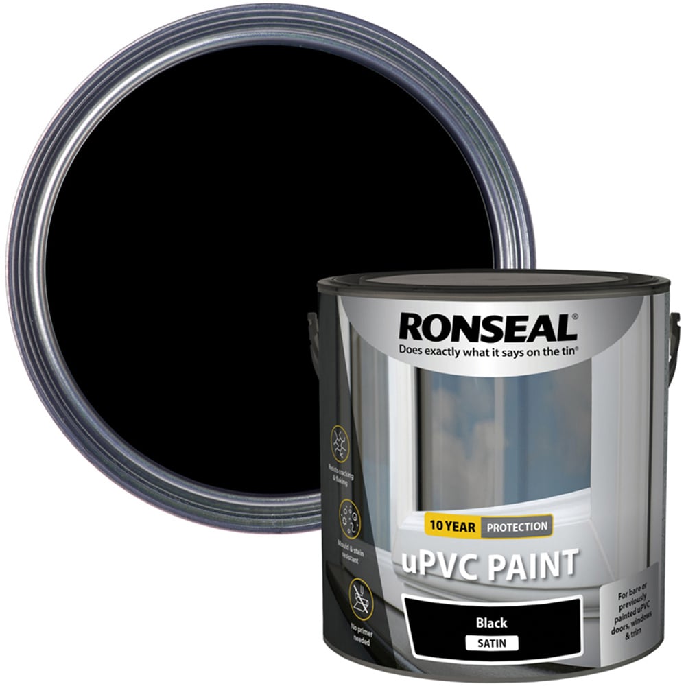 Ronseal uPVC Paint revamps your uPVC windows and doors with a long lasting, durable formula. Flexible to prevent cracking and mould resistant to minimize staining, this uPVC paint is ready to withstand whatever the weather throws at it. You can apply Ronseal uPVC Paint directly to the surface without the need of a primer and it'll be rain ready in 1 hour. This product covers 6.5 m²/litre, needs 2 to 3 coats, can be applied with a brush, roller or sprayer, is dry to touch in 1 hour and if needed can be recoated in 1 hour. When using Ronseal's uPVC Paint, wait for a warm dry day, above 10°C, and not likely to rain. Cold, wet weather can stop the paint from drying properly. Make sure the area you're painting is clean, dry and free from dirt, dust & grease. Wash the surface with warm soapy water, rinse and leave to dry thoroughly before painting. Then make sure the surface is smooth, any damaged areas will need repairing before painting. Lightly sand the area to give it an even finish. Use 180-220grit sandpaper to do this. If you're painting over previously painted uPVC and the paint is in good condition, just give it a light sand with 240grit sandpaper. If it’s flaking or cracked, you’ll need to sand it off. Use 120grit sandpaper. Remember to wear a face mask. Clean up any dust and wipe with a damp cloth. Give the paint a really good stir. Then paint it on with a brush or foam roller. Leave it to dry for 2-4 hours, then put your second coat on. If you’re painting over a dark colour you may need to put a third coat on. Your last coat will be waterproof in 1 hour.