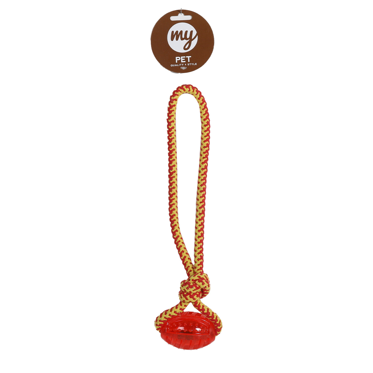 Keep your dog entertained with the Rope and TPR Ball Dog Toy. An improvement on a classic rope toy, this great value toy contains TPR balls for added engagement and provides an extra texture for your dog. The colourful designs are sure to keep your dogs attention and keep them playing for longer and the tougher rubber construction allows for extensive playing. The various shapes have handles and grab points which allow you to hold one end whilst your dog pulls on the other, and makes throwing (and avoiding the slobbery bit) easier.