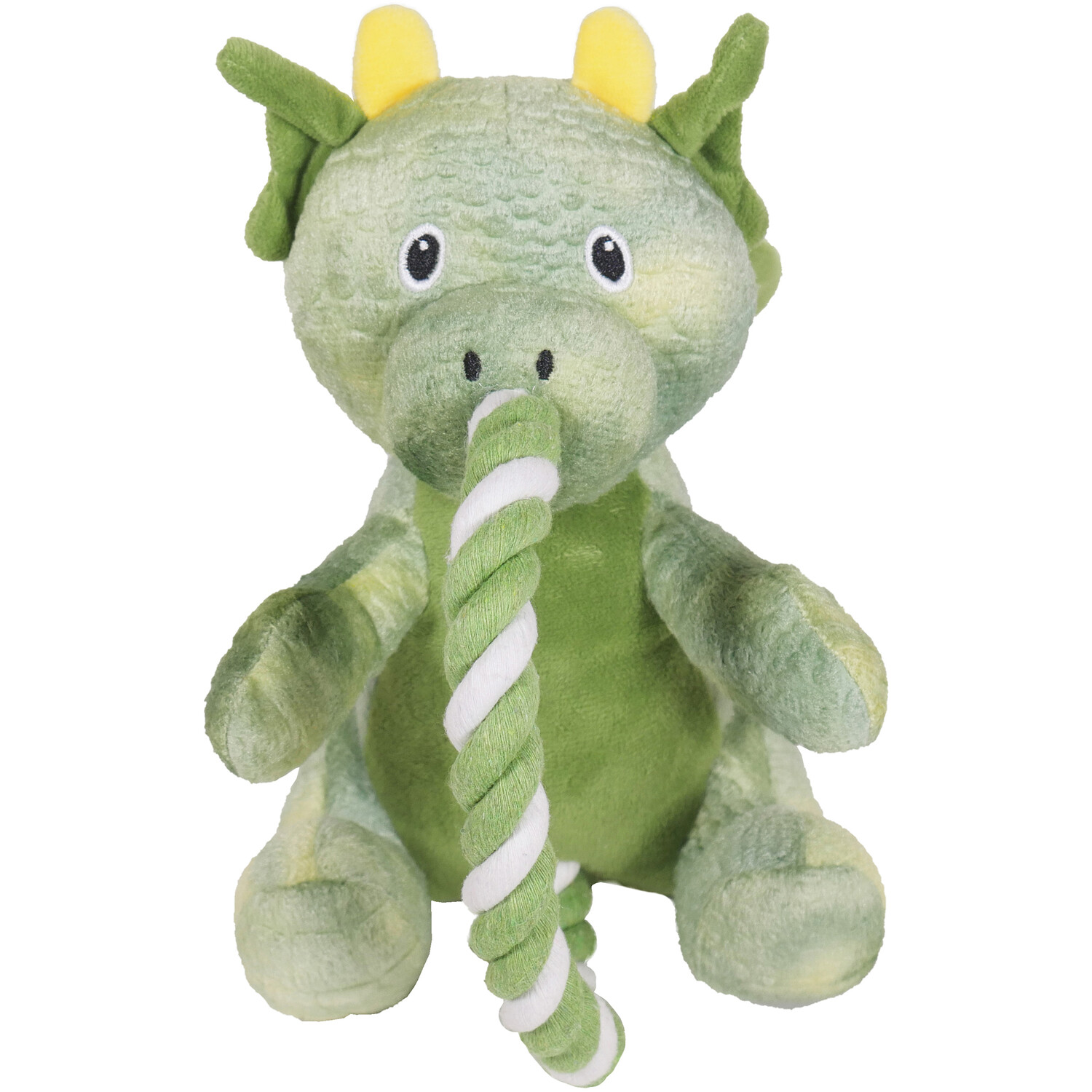 The Rosewood Green Rope Dragon Dog Toy is a cute plush toy with a tough rope core, perfect for snuggling as well as chewing. Its hidden squeaker also helps to entice active play, keeping your dog entertained for hours! Collect other characters from the Super Tough Plush collection for a whole host of long-lasting fun!
